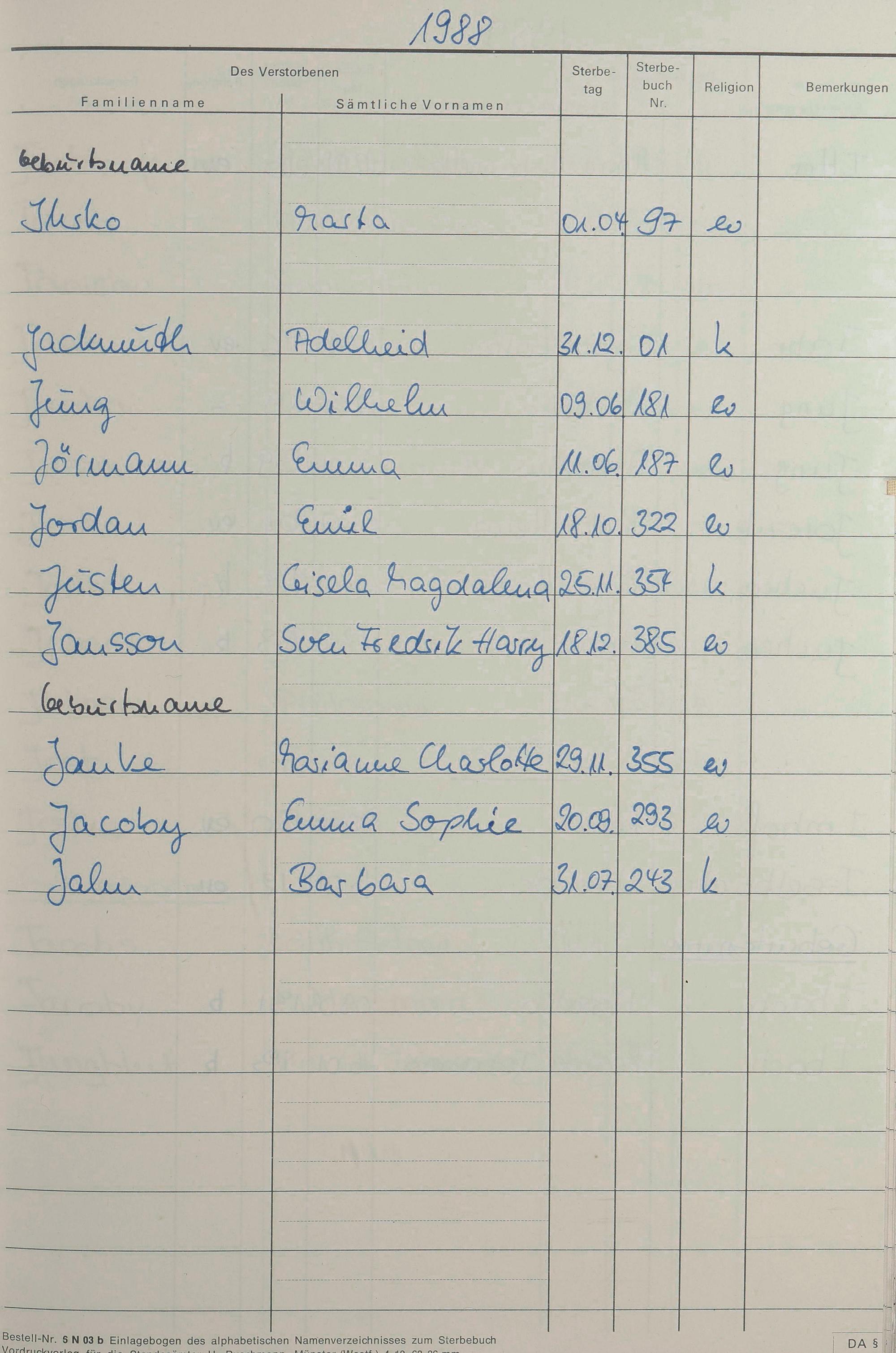 I-J - Register Sterbefälle 1974-1995