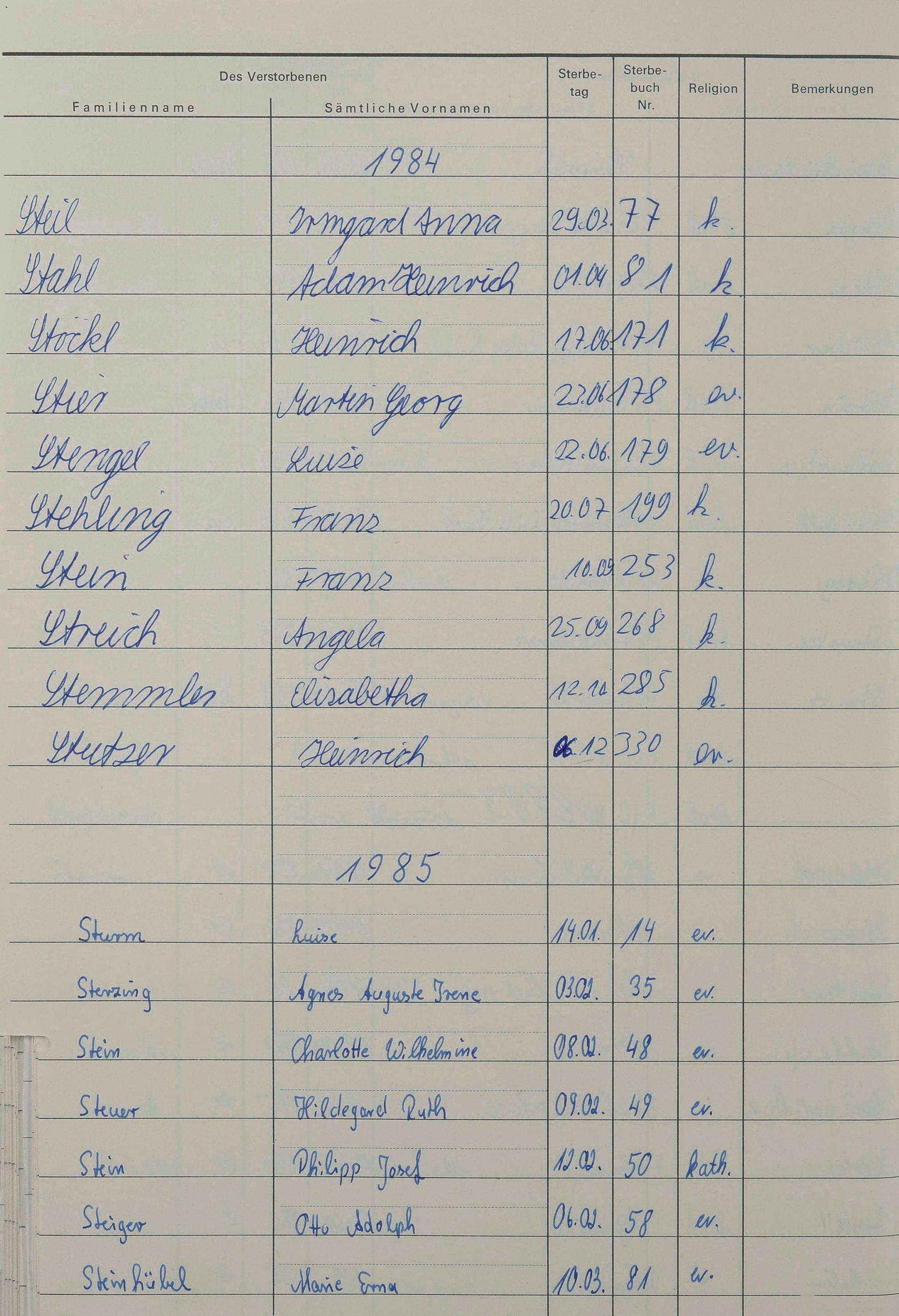 St - Register Sterbefälle 1974-1995