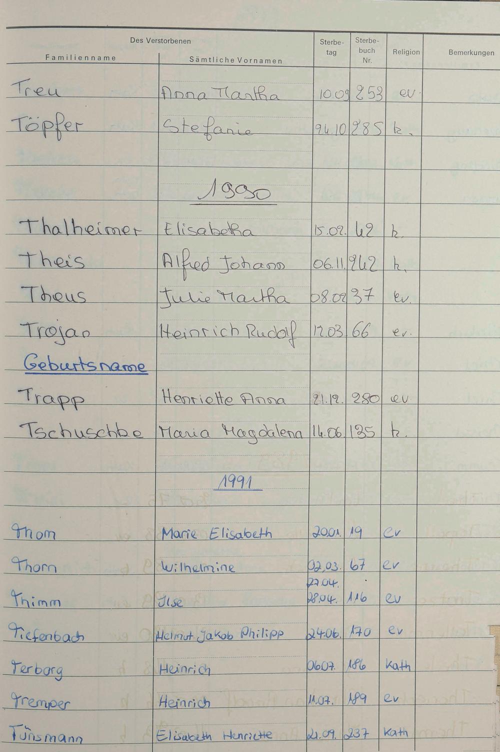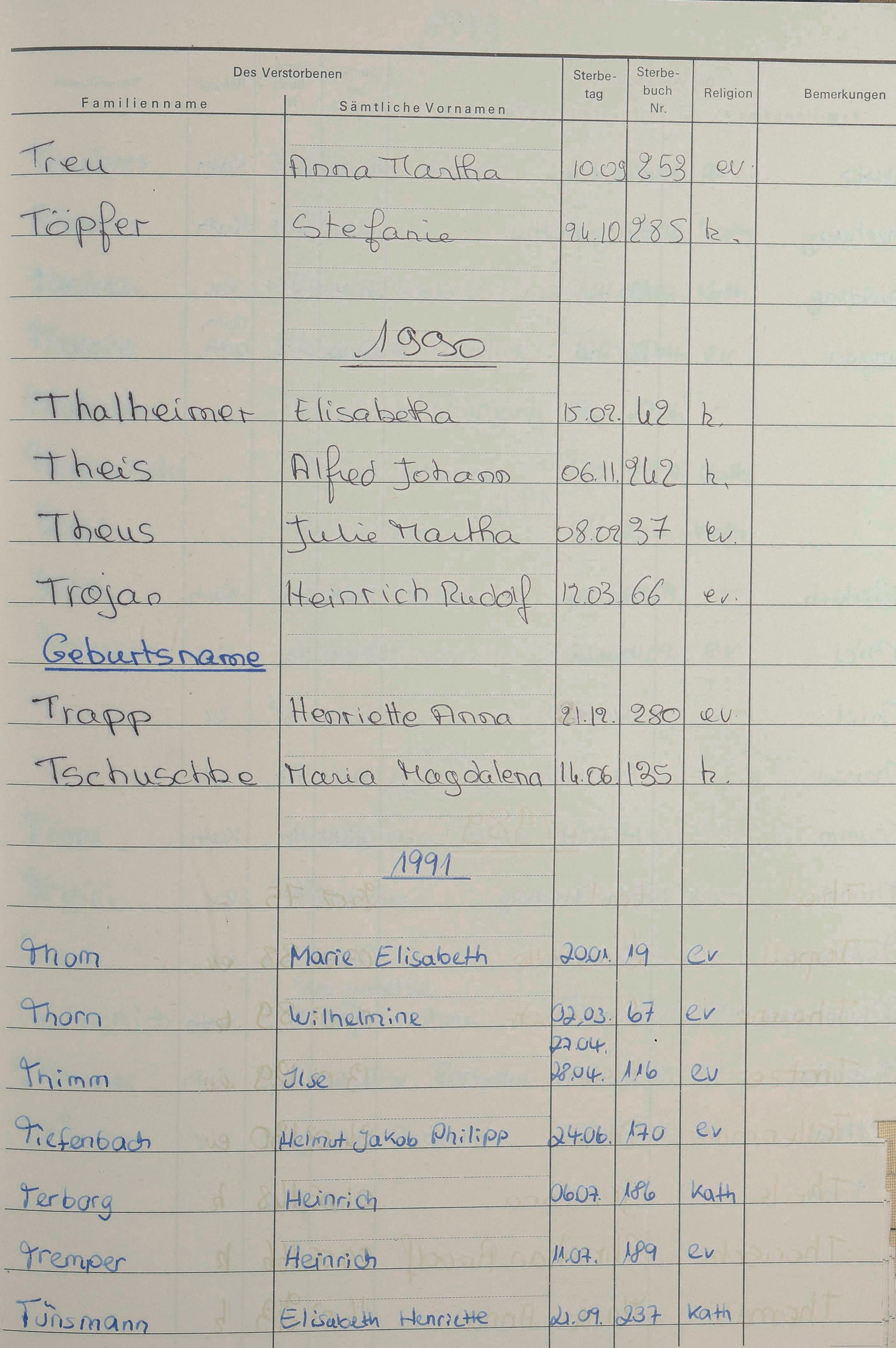 C - Register Sterbefälle 1974-1995