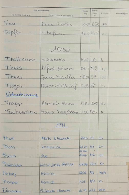 Register A-Z zum Sterberegister 1974-1995