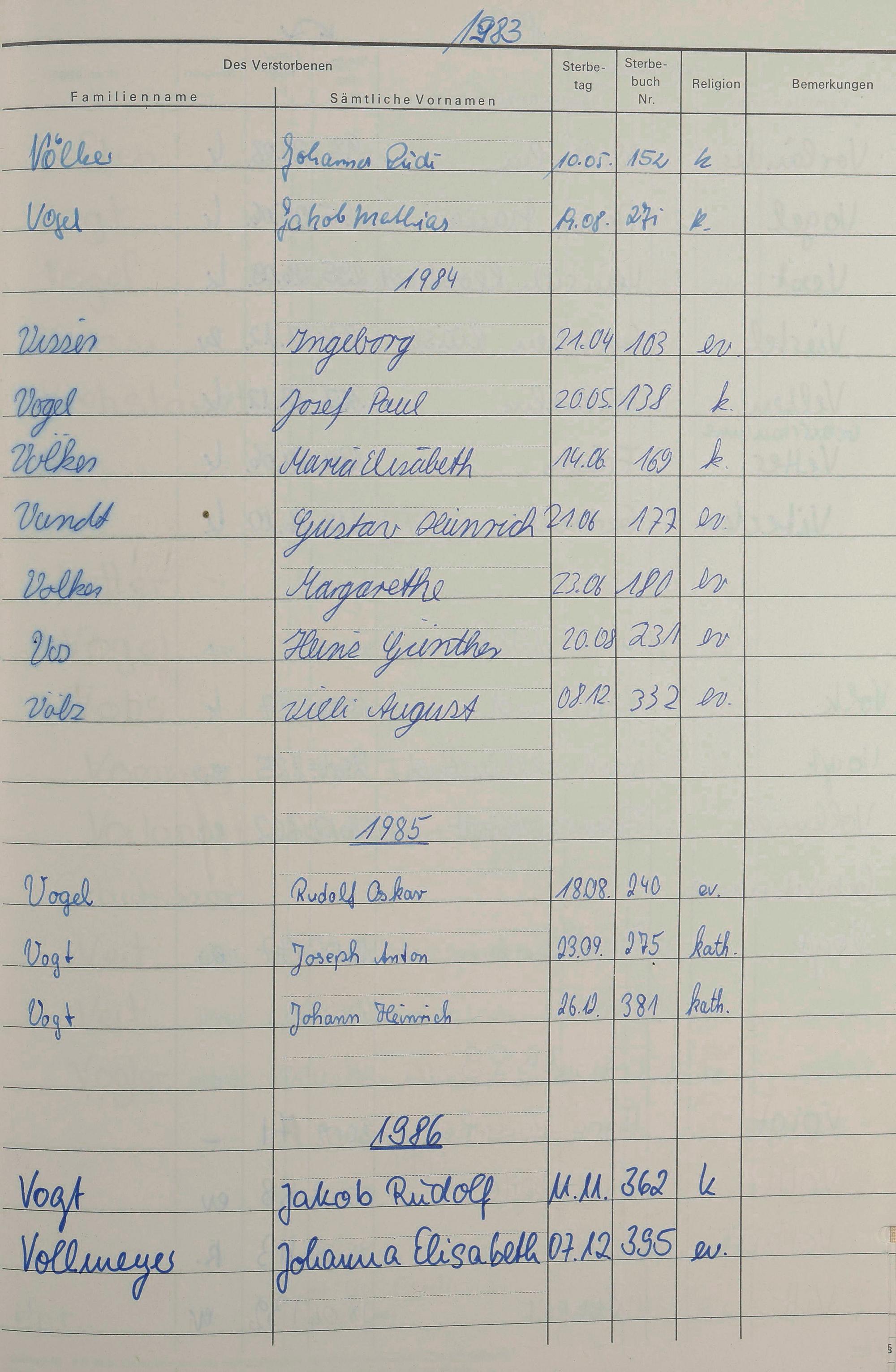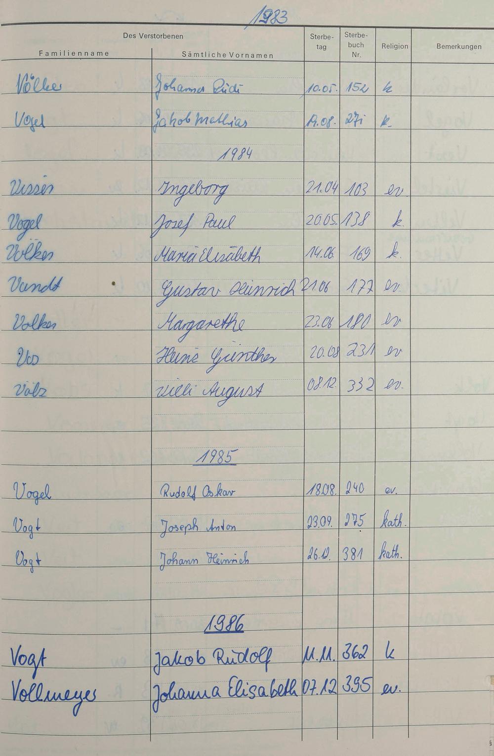 V - Register Sterbefälle 1974-1995