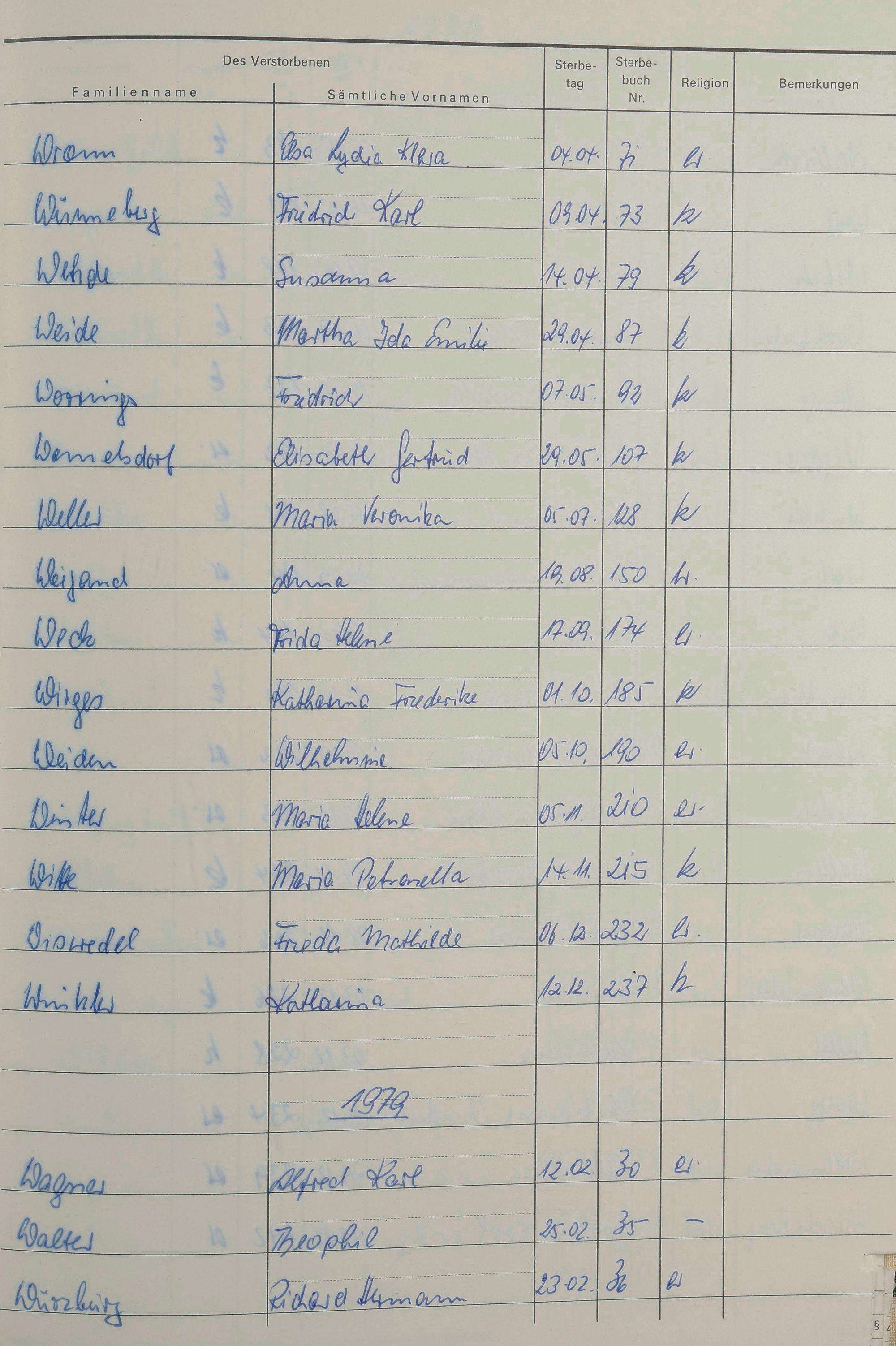W - Register Sterbefälle 1974-1995