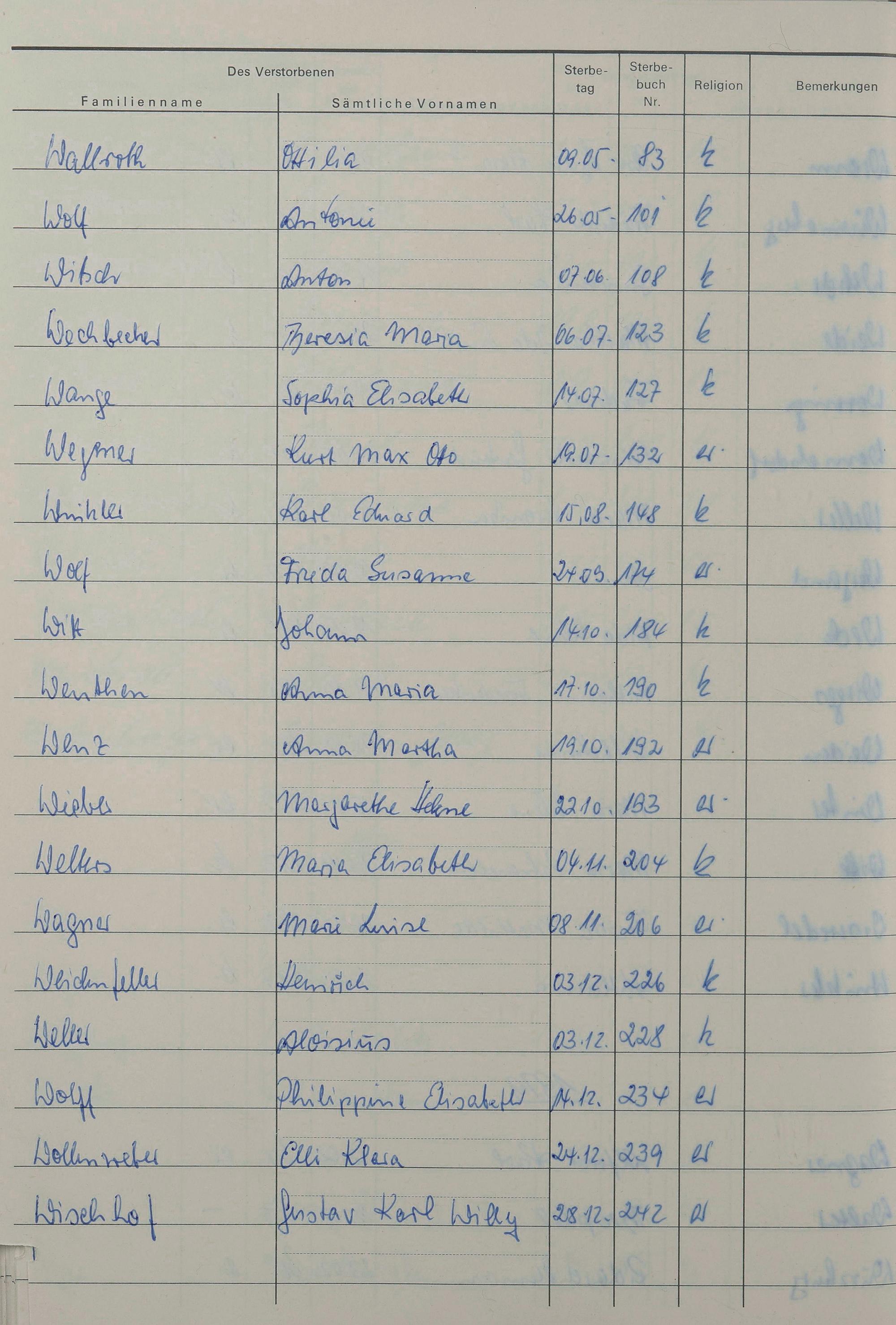 W - Register Sterbefälle 1974-1995