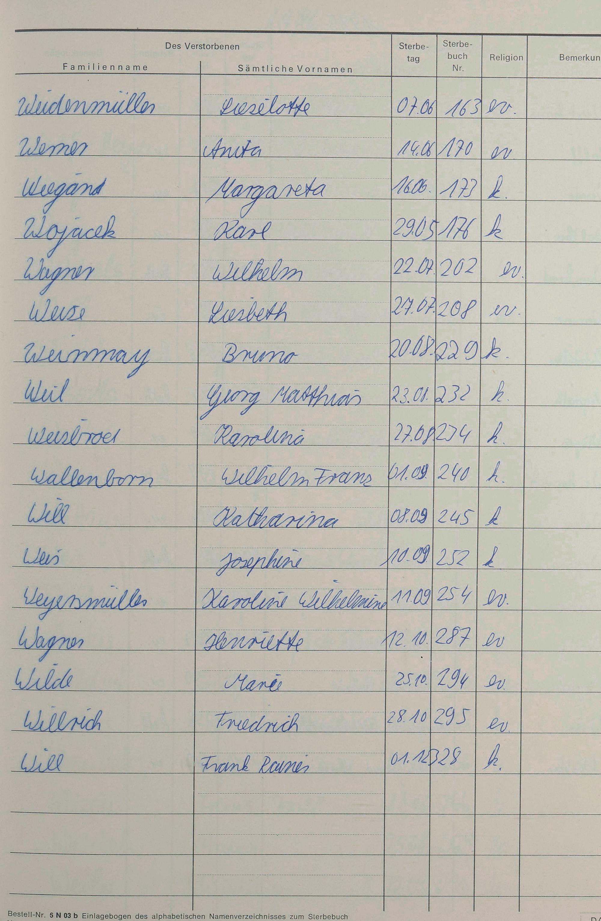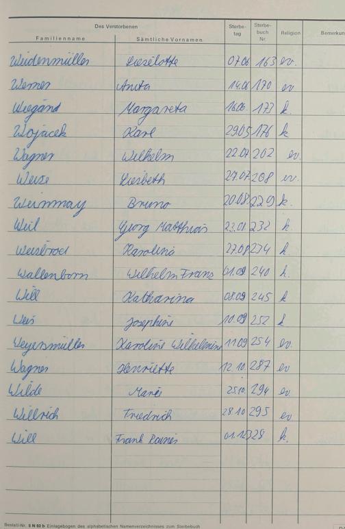 W - Register Sterbefälle 1974-1995