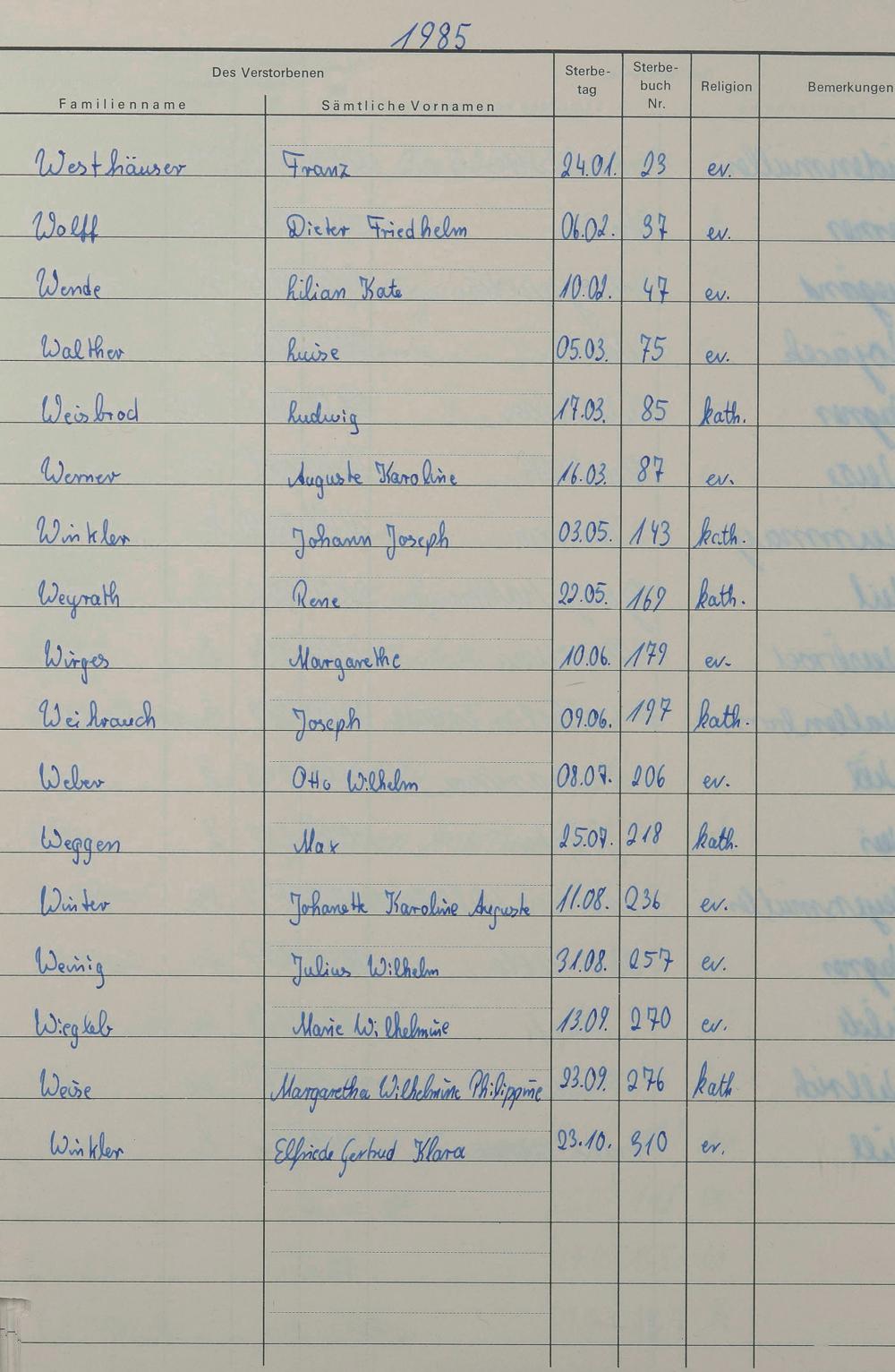 W - Register Sterbefälle 1974-1995
