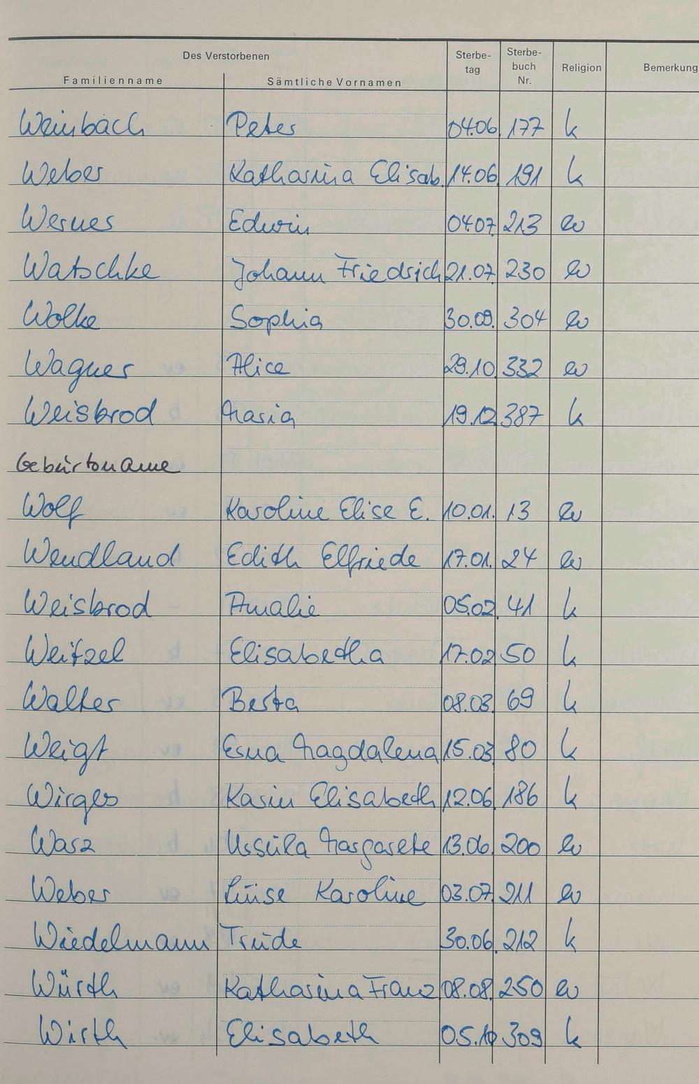 W - Register Sterbefälle 1974-1995