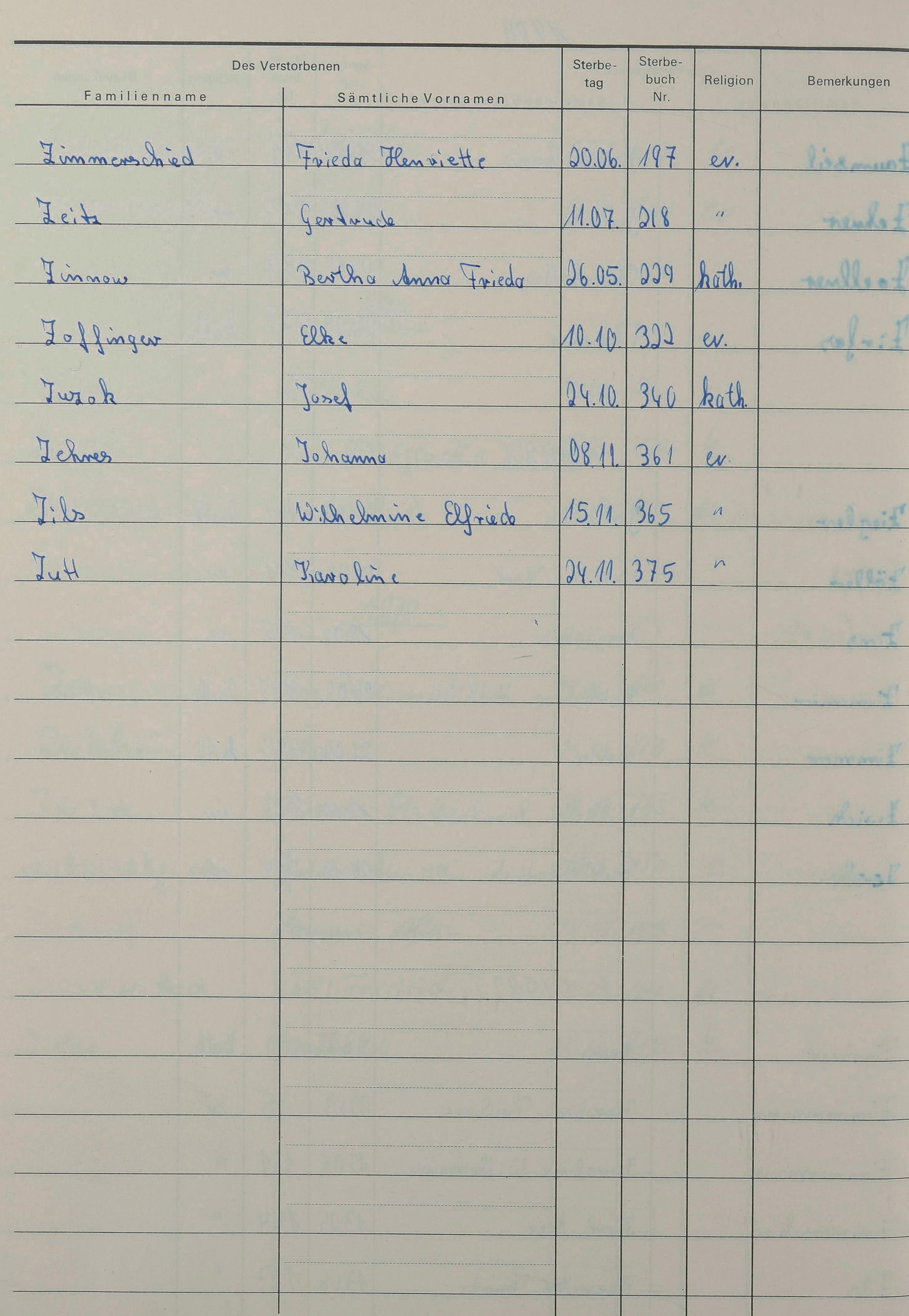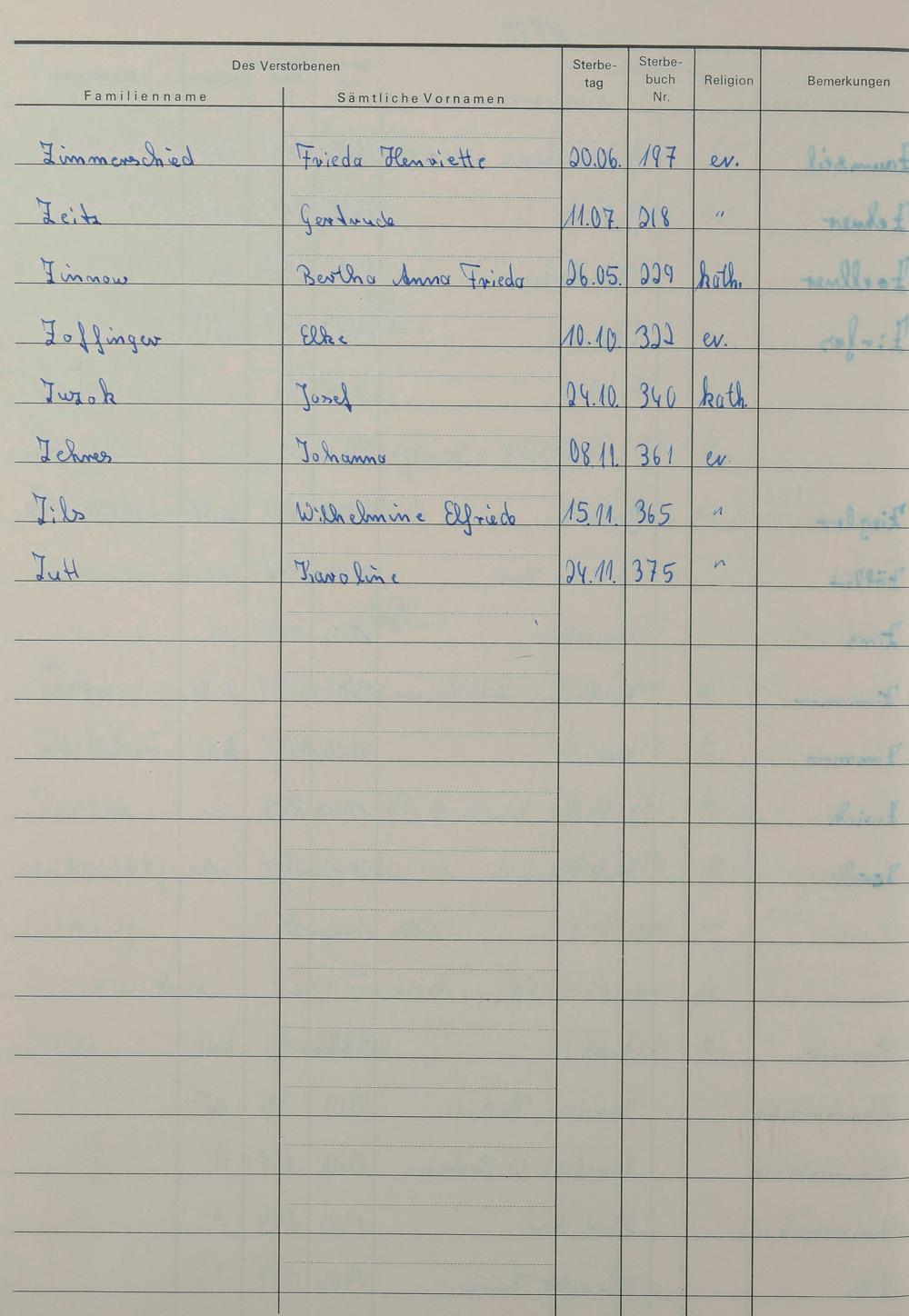 Z - Register Sterbefälle 1974-1995