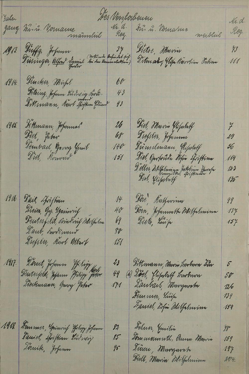 Register A - Z zum Sterberegister 1901-1933