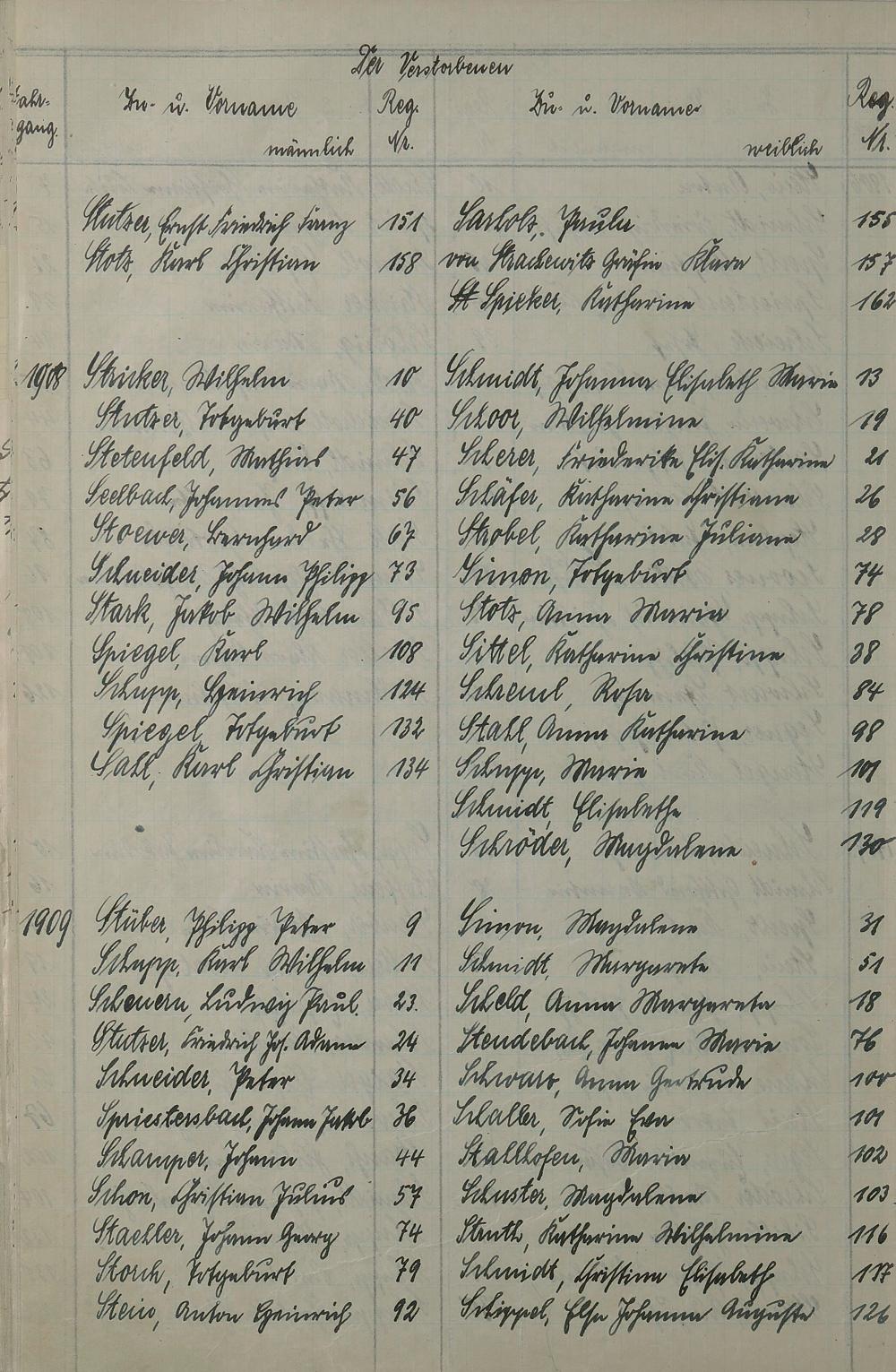 Register A - Z zum Sterberegister 1901-1933