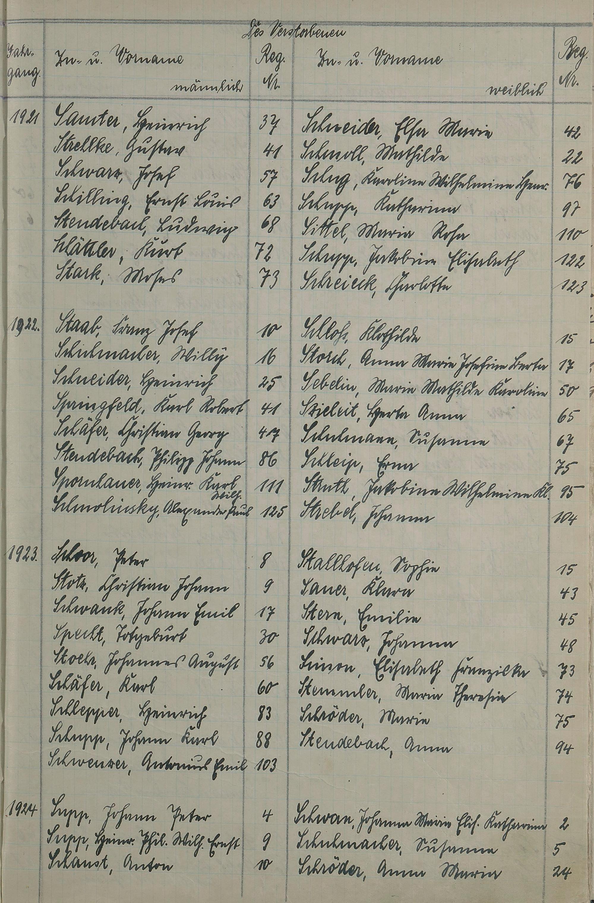 Register A - Z zum Sterberegister 1901-1933