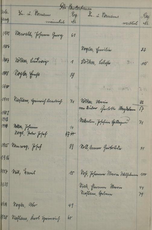 Register A - Z zum Sterberegister 1901-1933