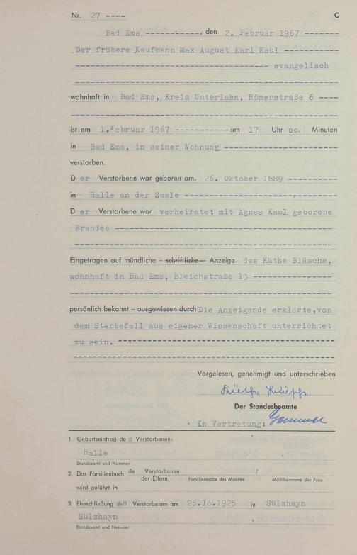Sterberegister 1967