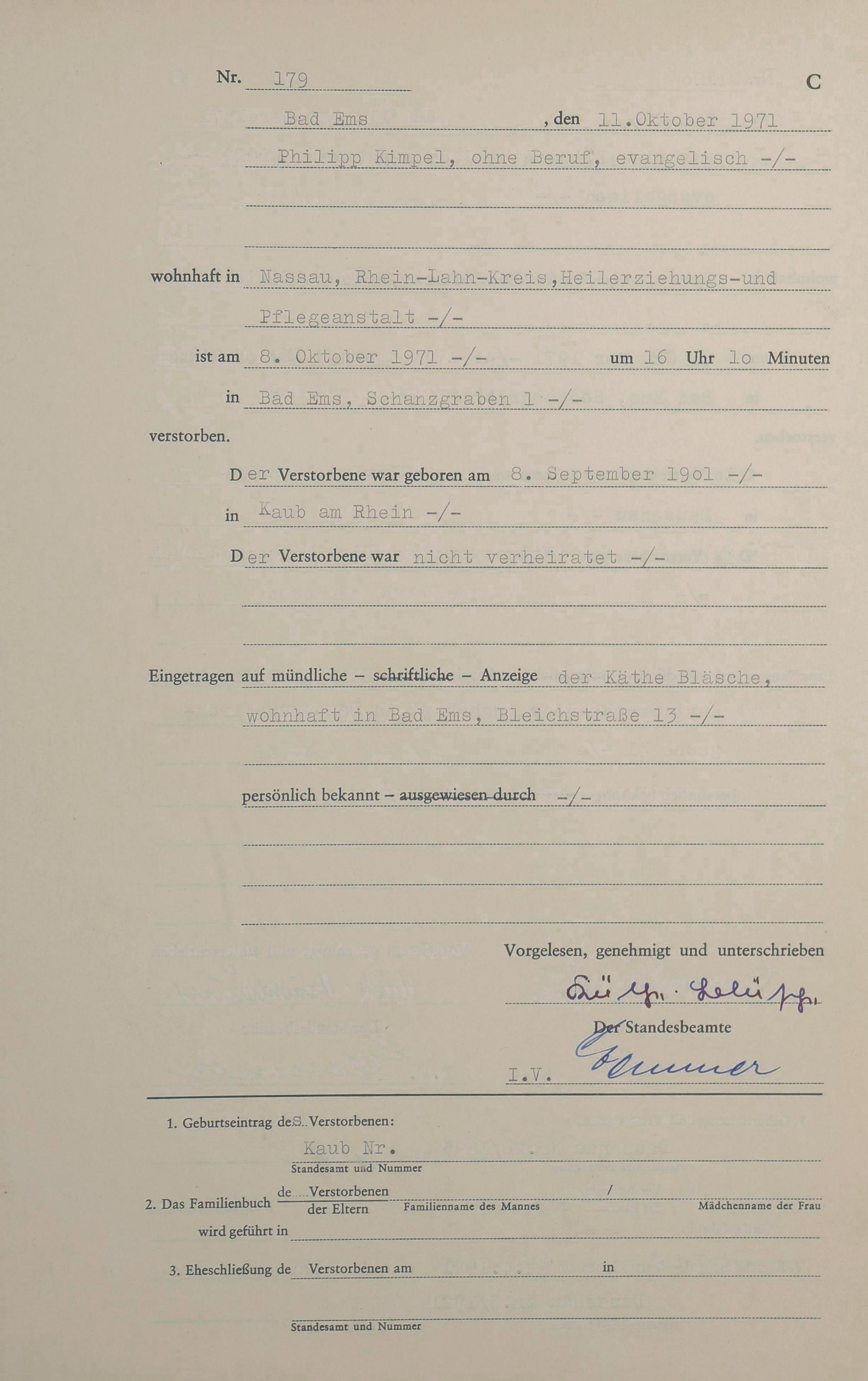 1547: Sterberegister 1971
