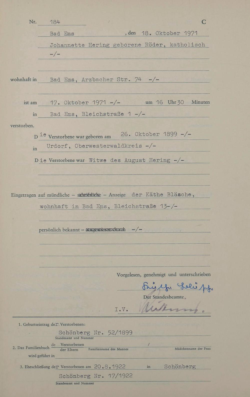 1547: Sterberegister 1971