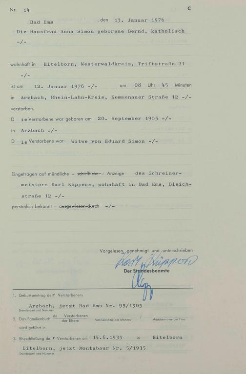 1303: Sterberegister 1976