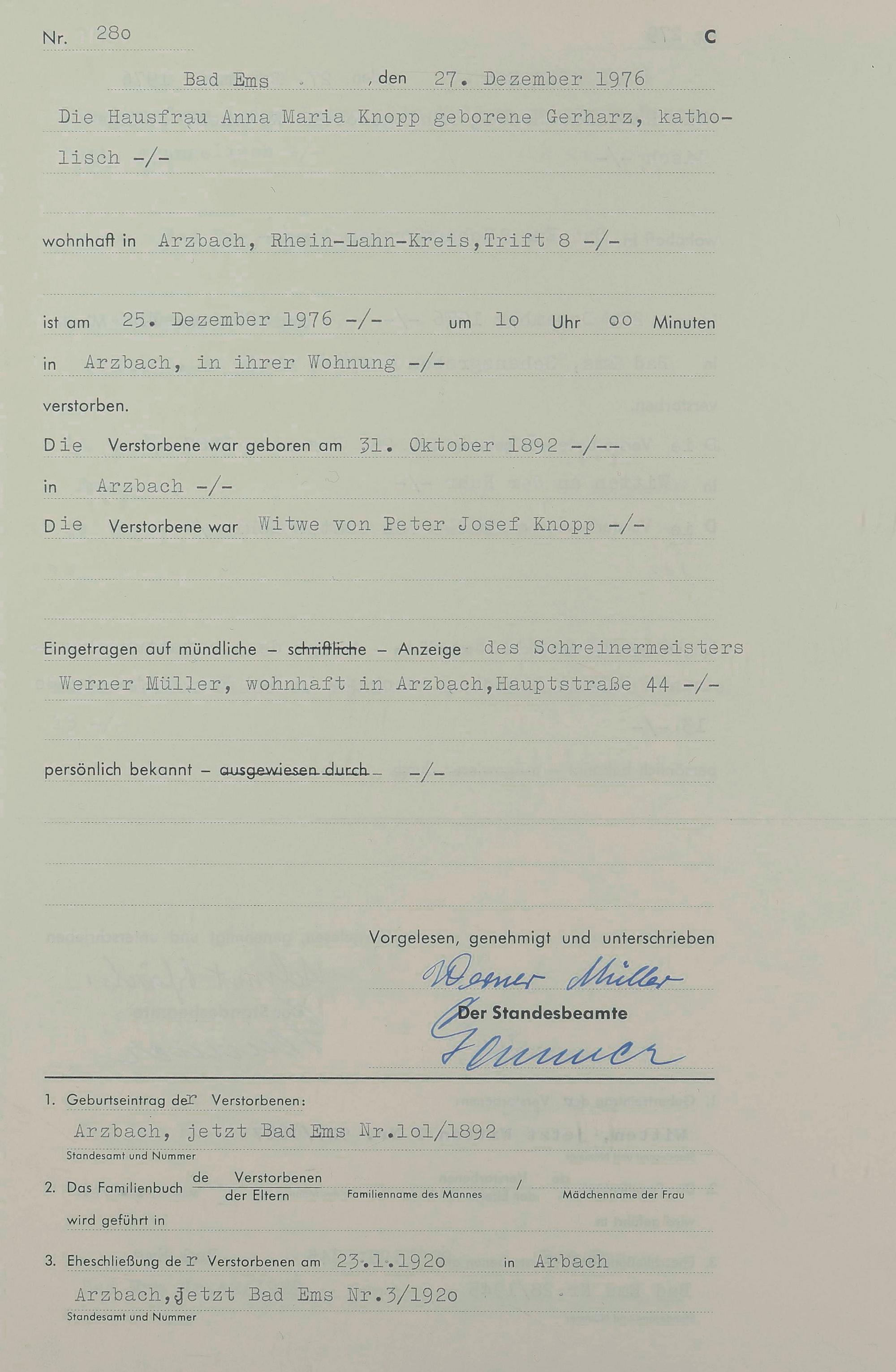 1303: Sterberegister 1976