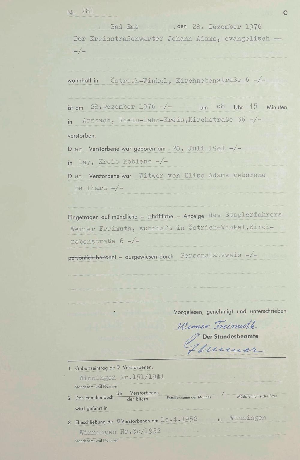 1303: Sterberegister 1976