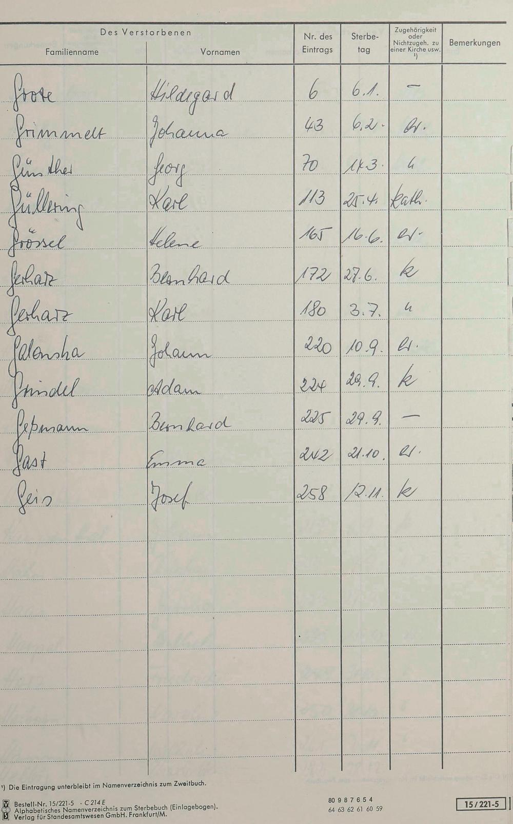1303: Sterberegister 1976