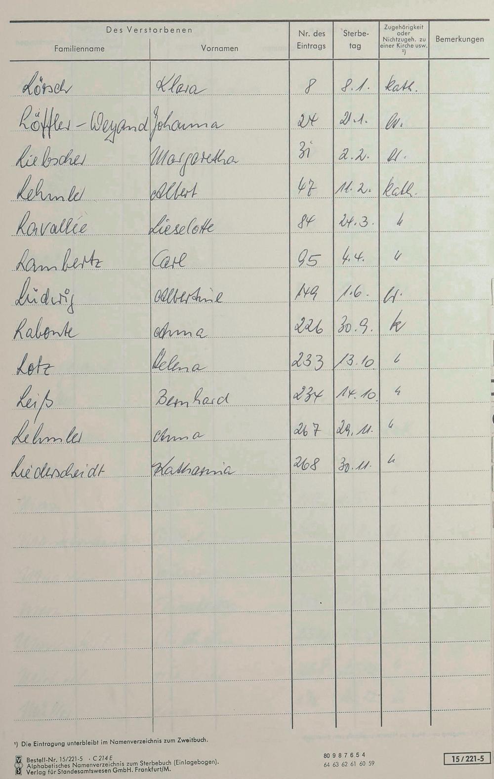 1303: Sterberegister 1976