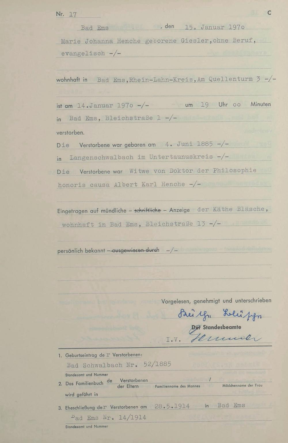 1546: Sterberegister 1970