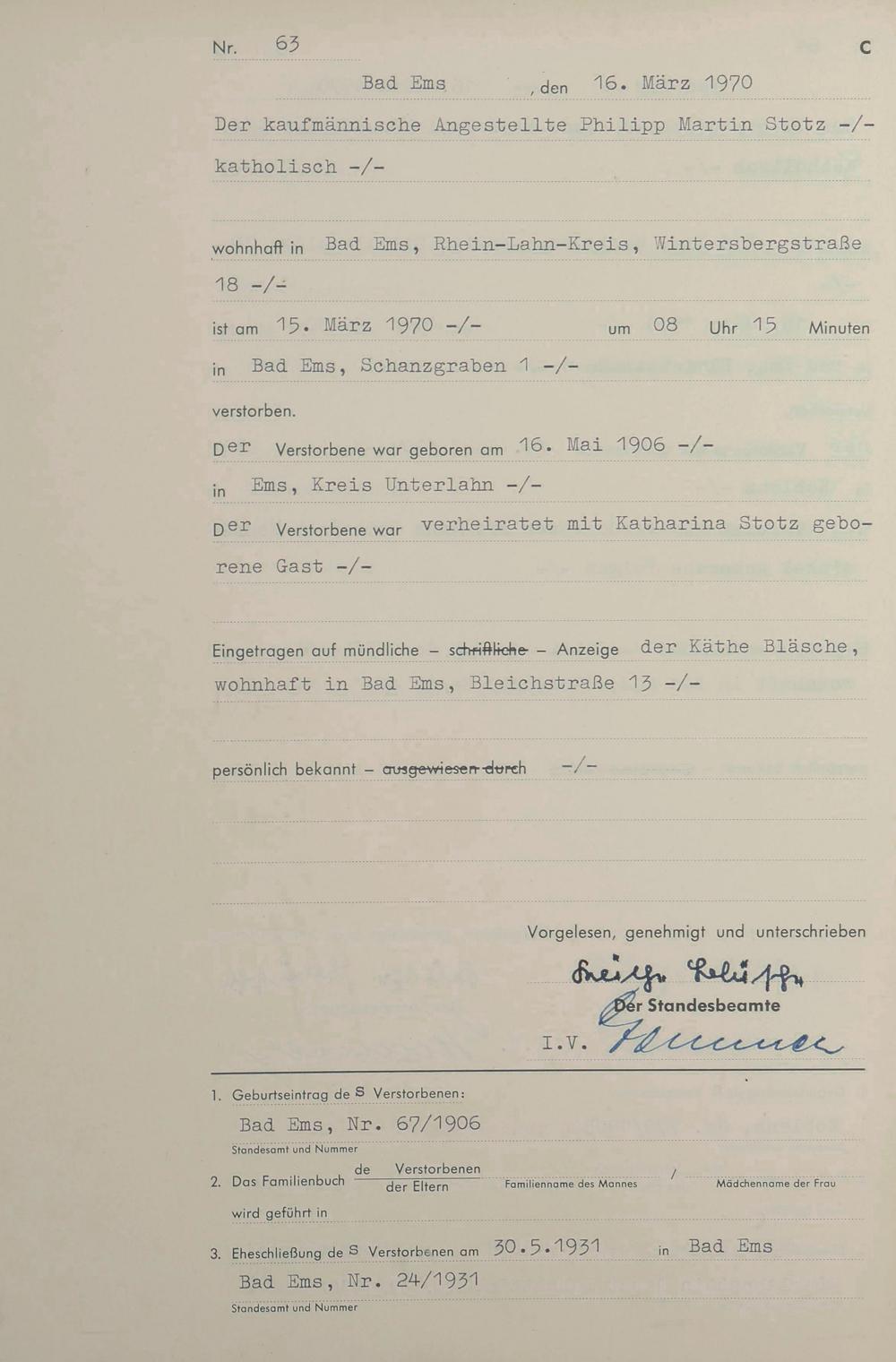 1546: Sterberegister 1970