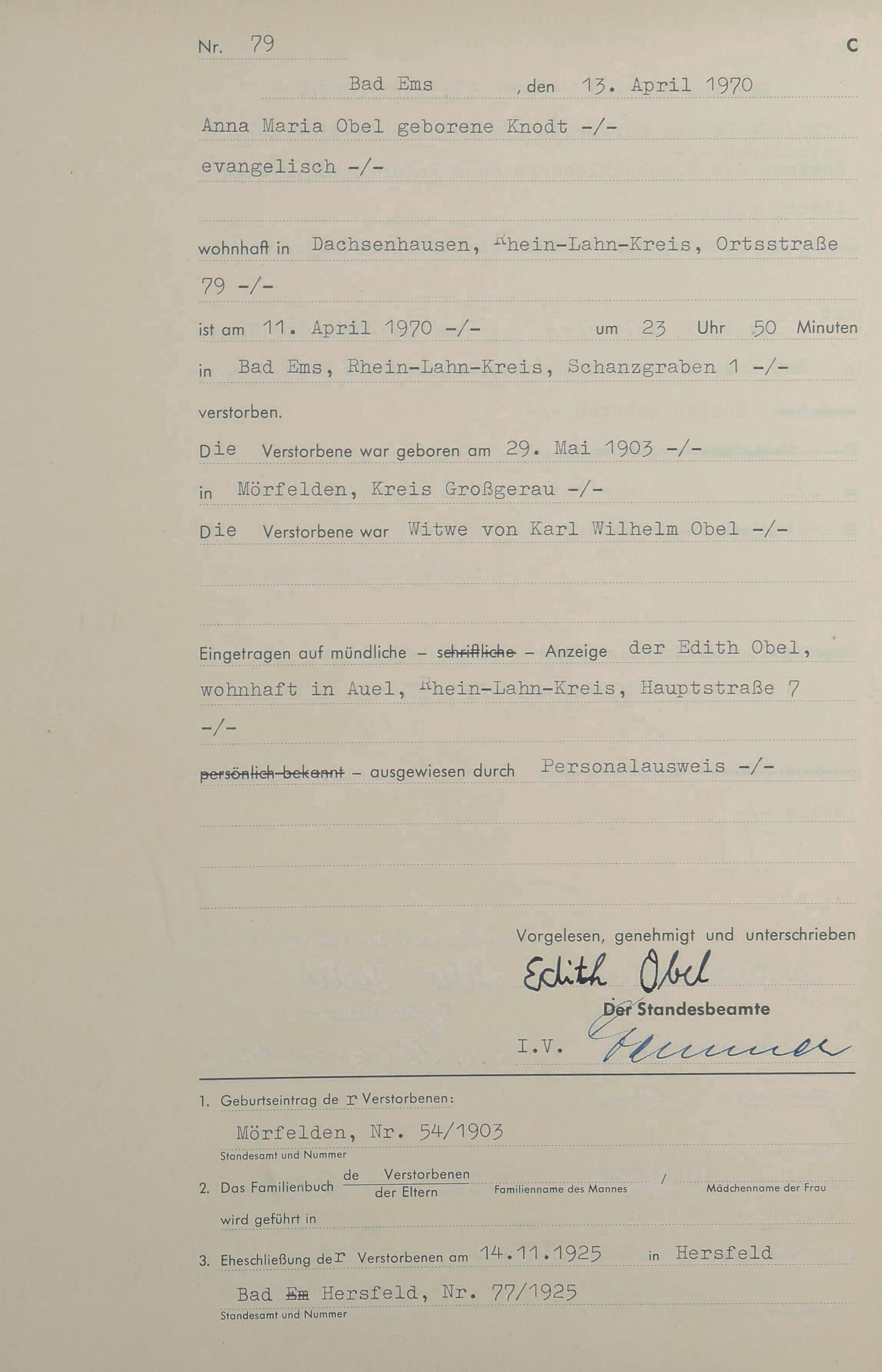 Sterberegister 1970