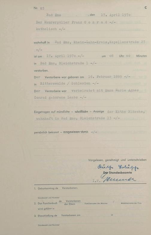 Sterberegister 1970