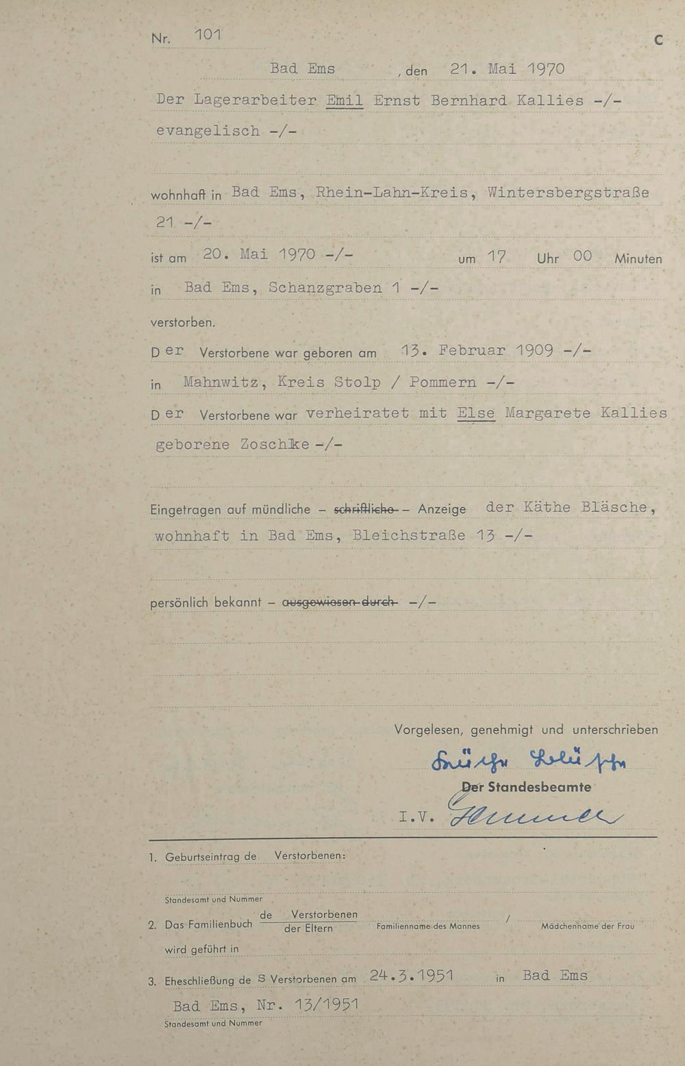 Sterberegister 1970