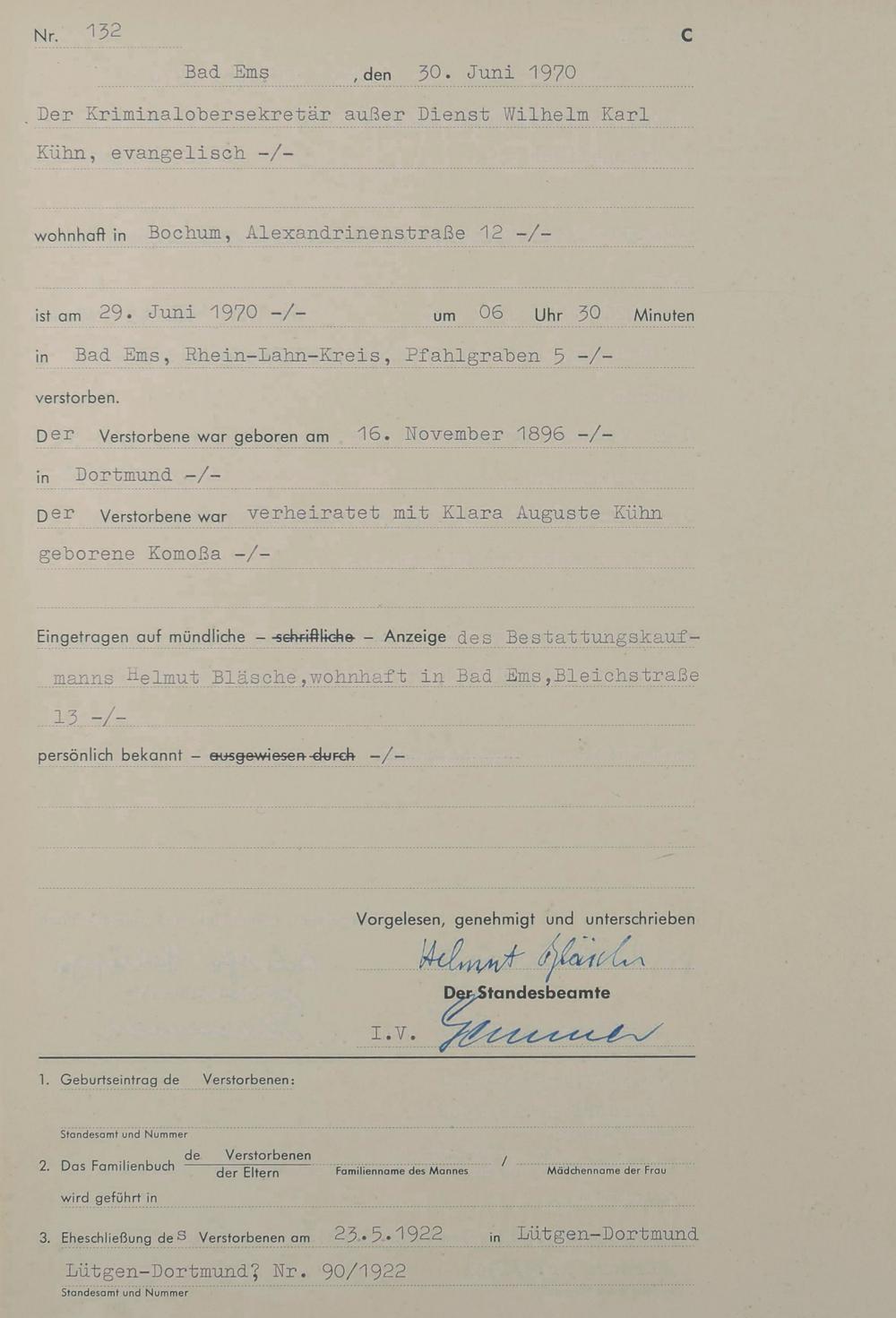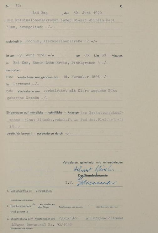 Sterberegister 1970