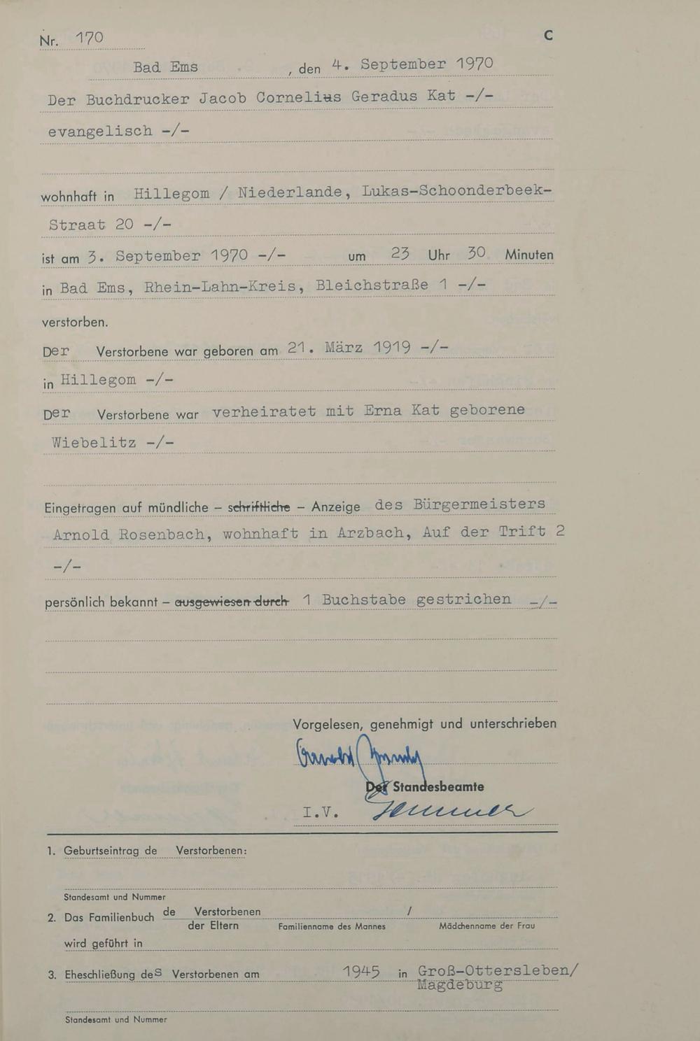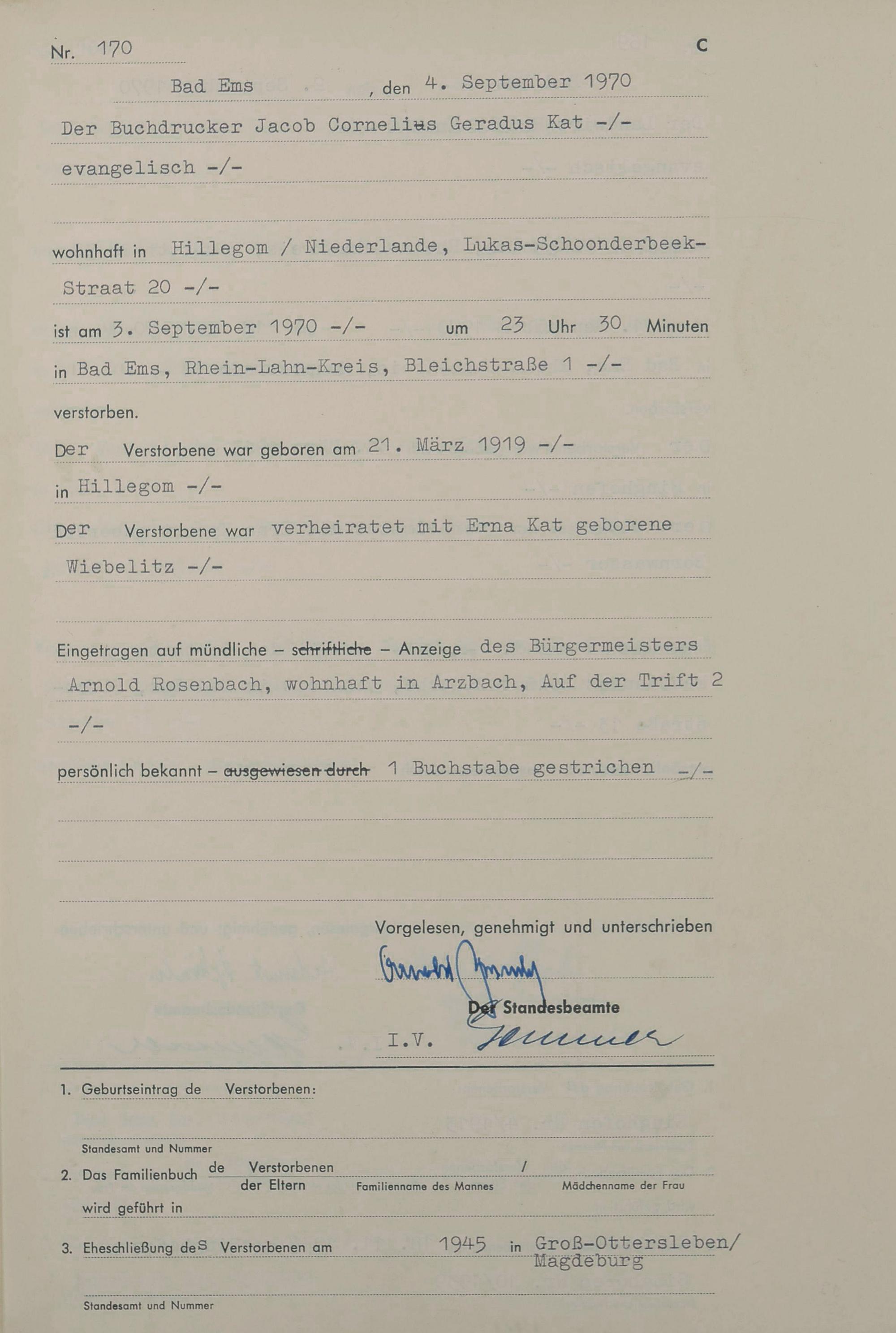 Sterberegister 1970