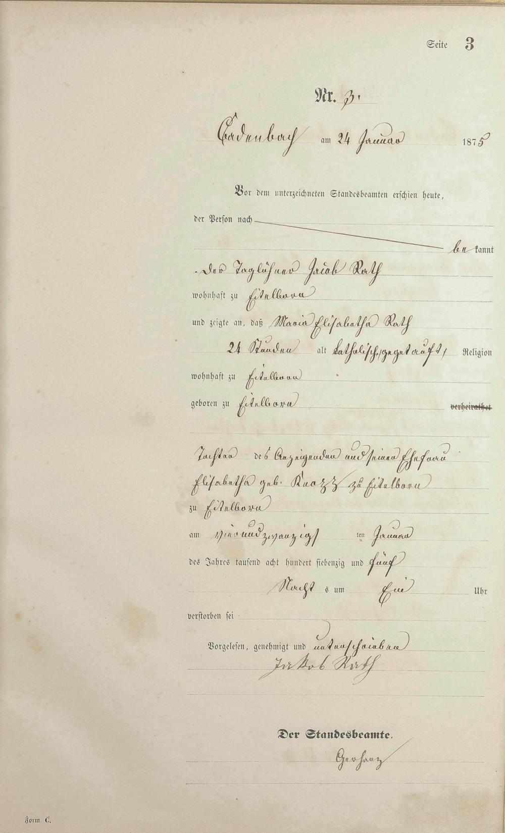 Sterberegister 1875
