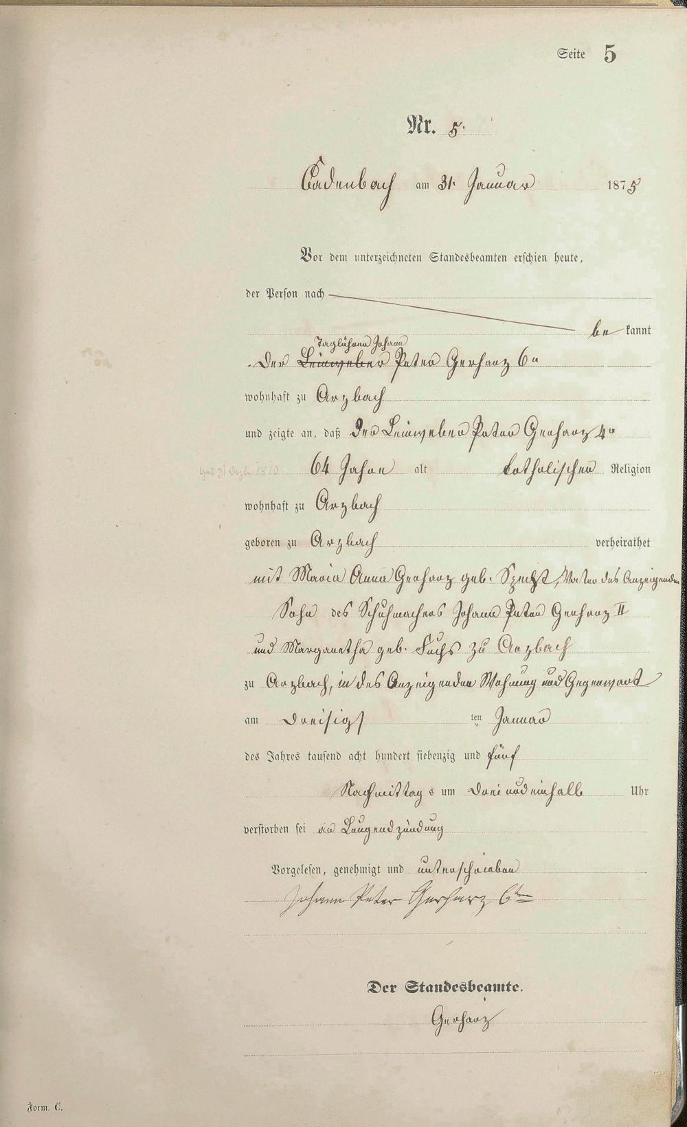 Sterberegister 1875