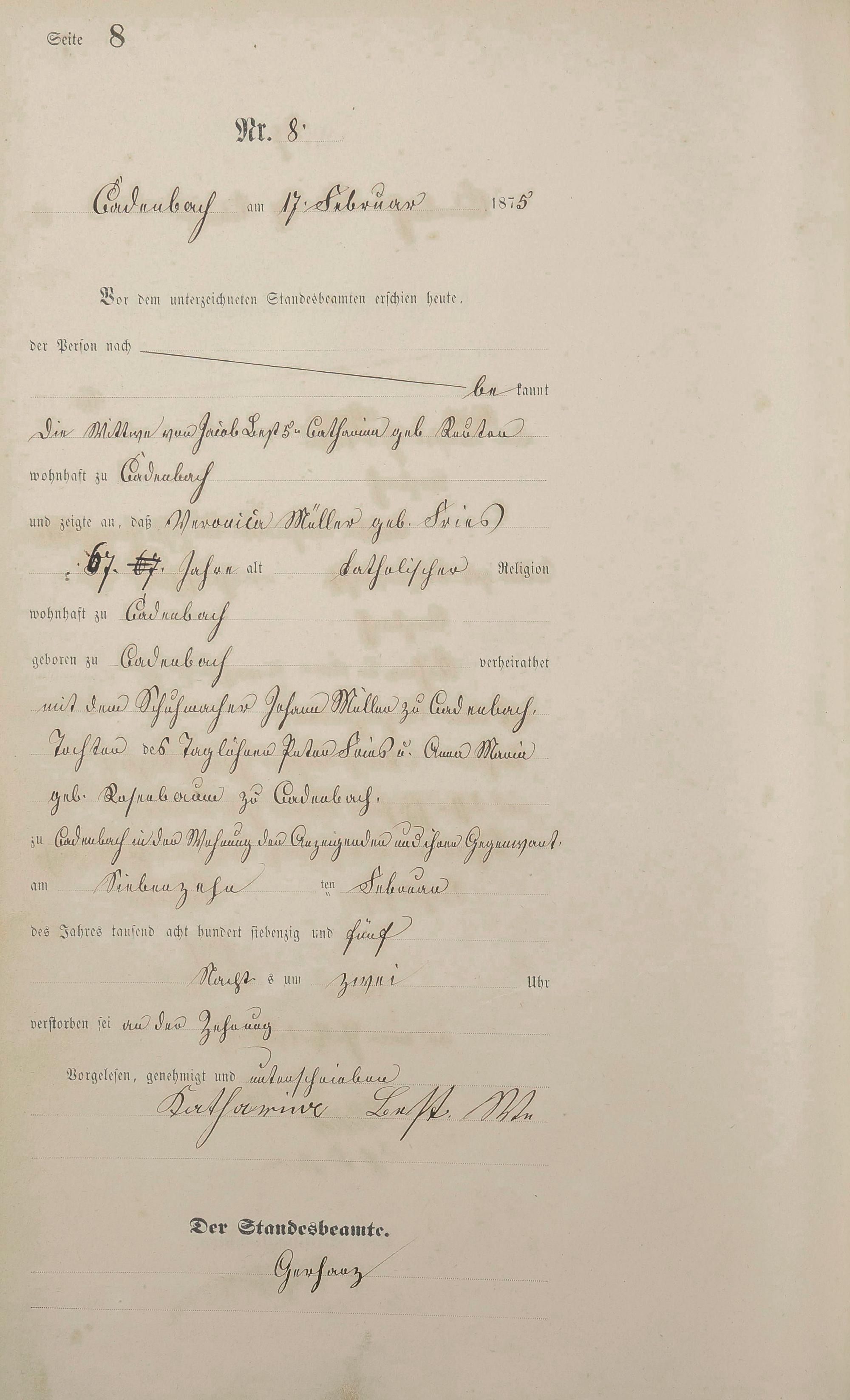 Sterberegister 1875
