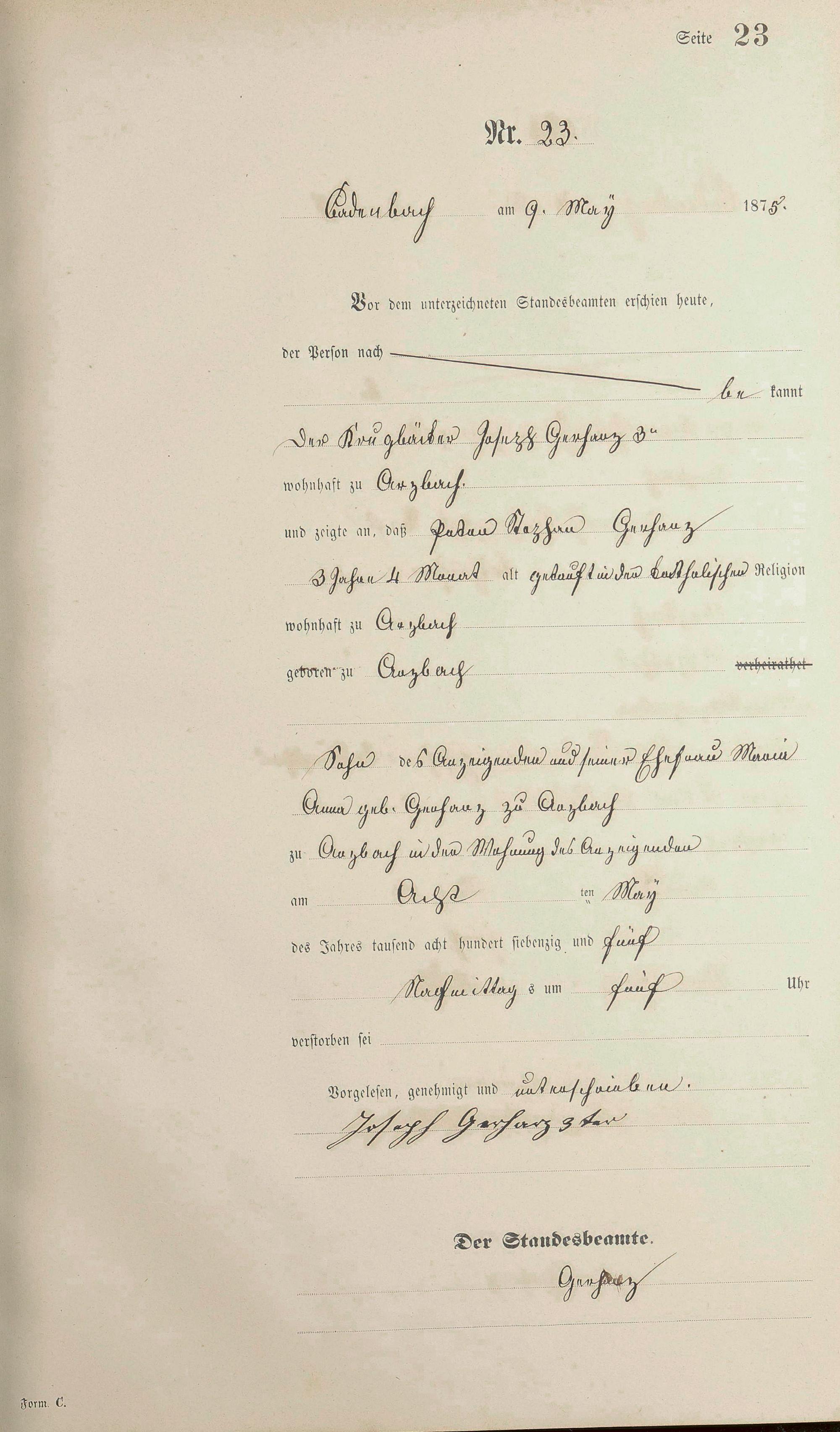 Sterberegister 1875
