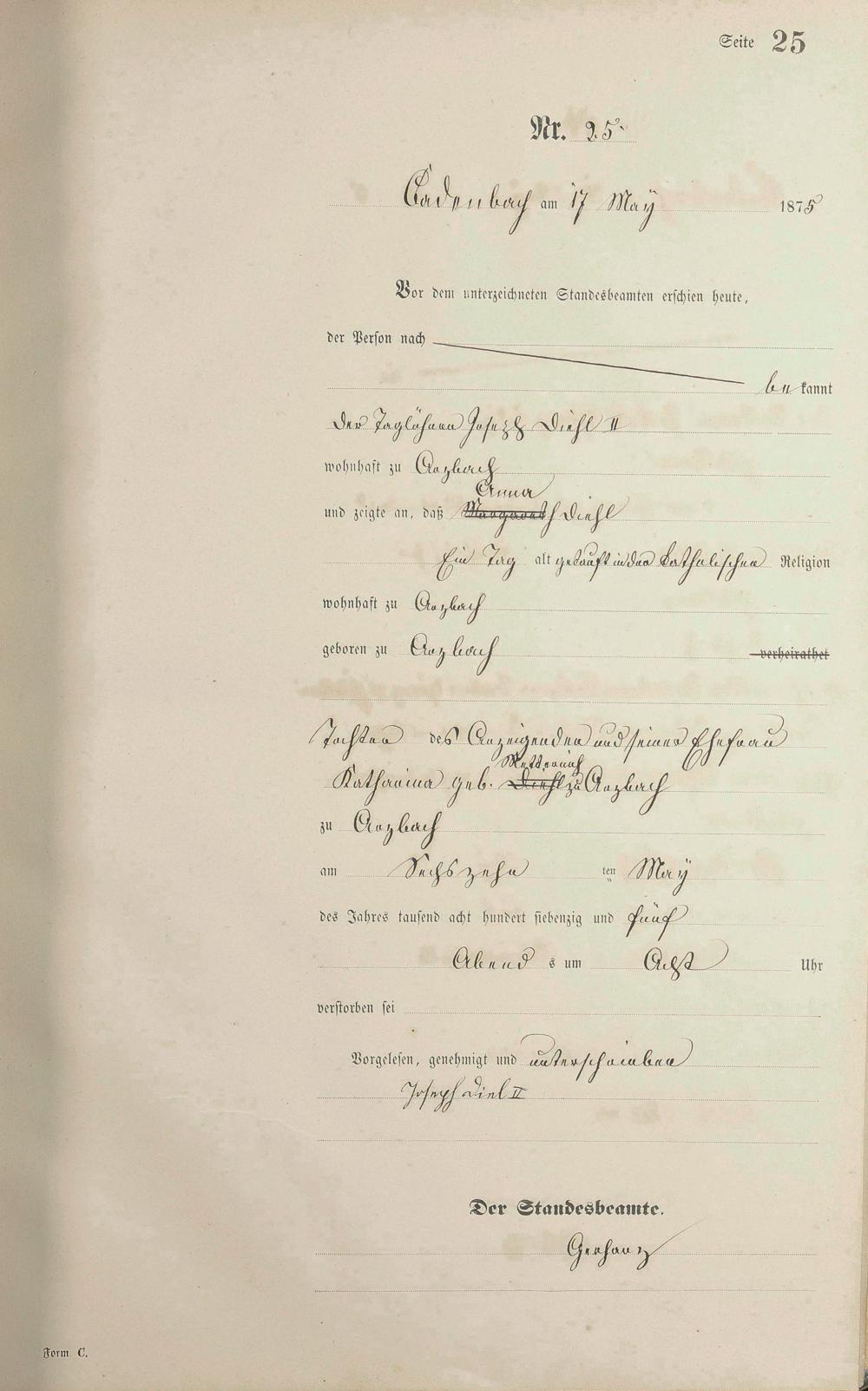 Sterberegister 1875