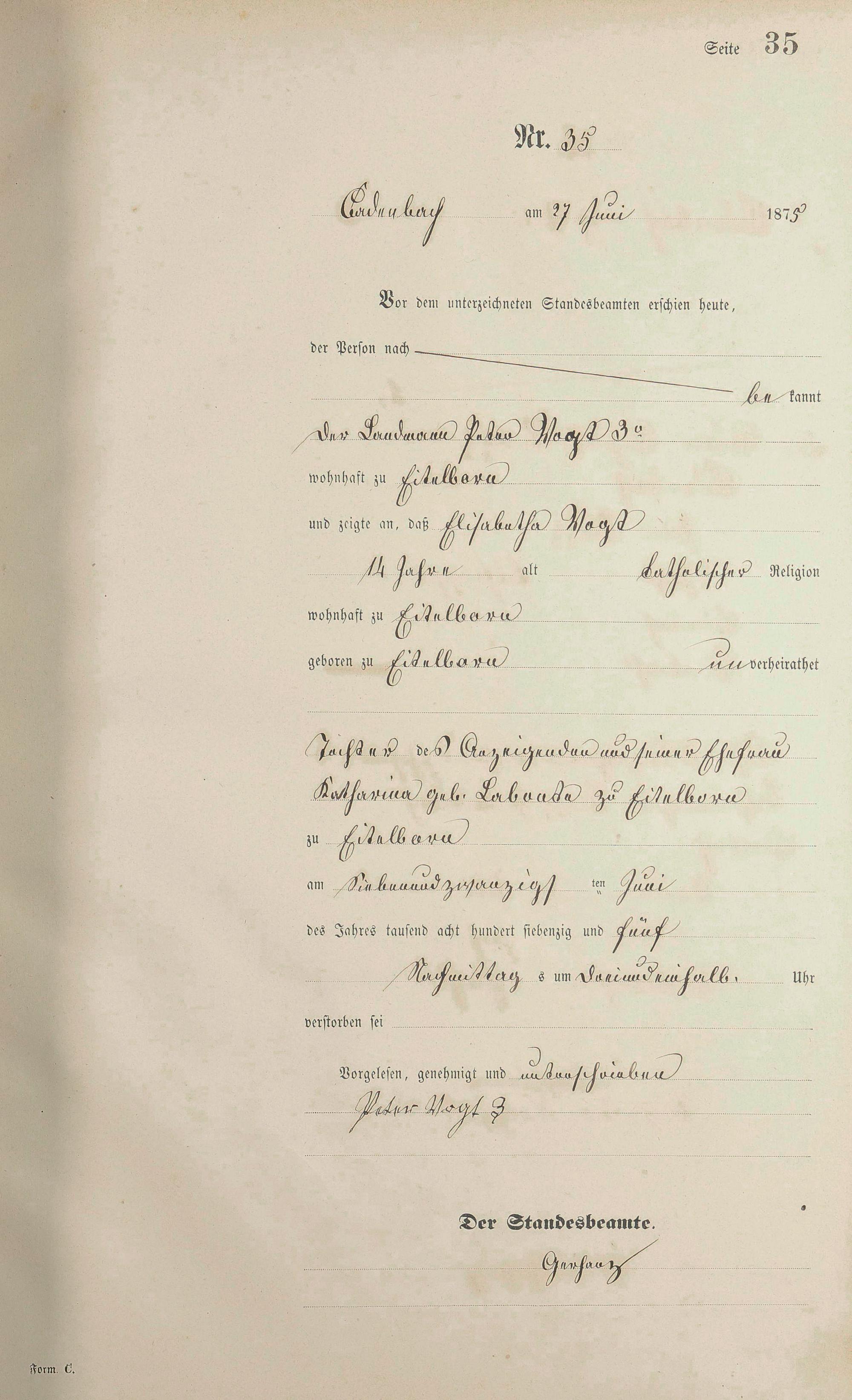 Sterberegister 1875