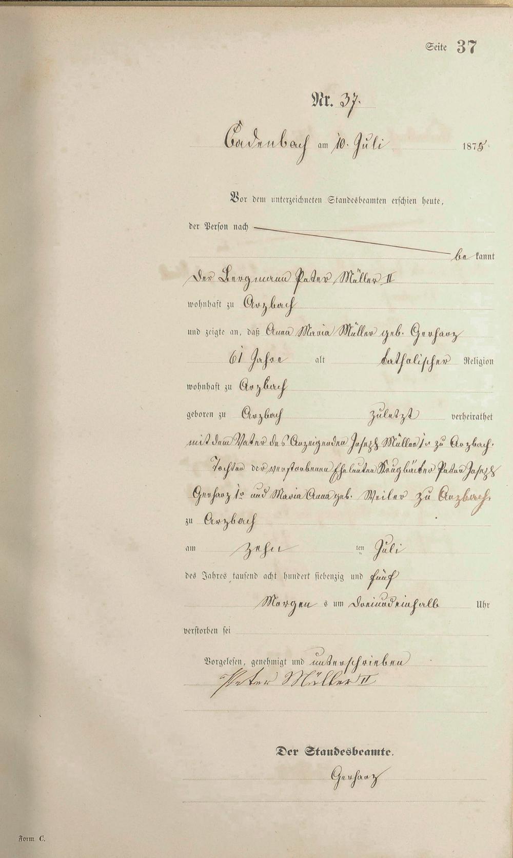 Sterberegister 1875