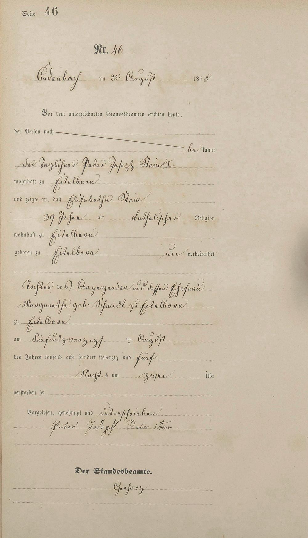 Sterberegister 1875