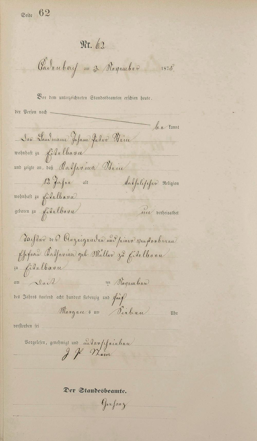 Sterberegister 1875