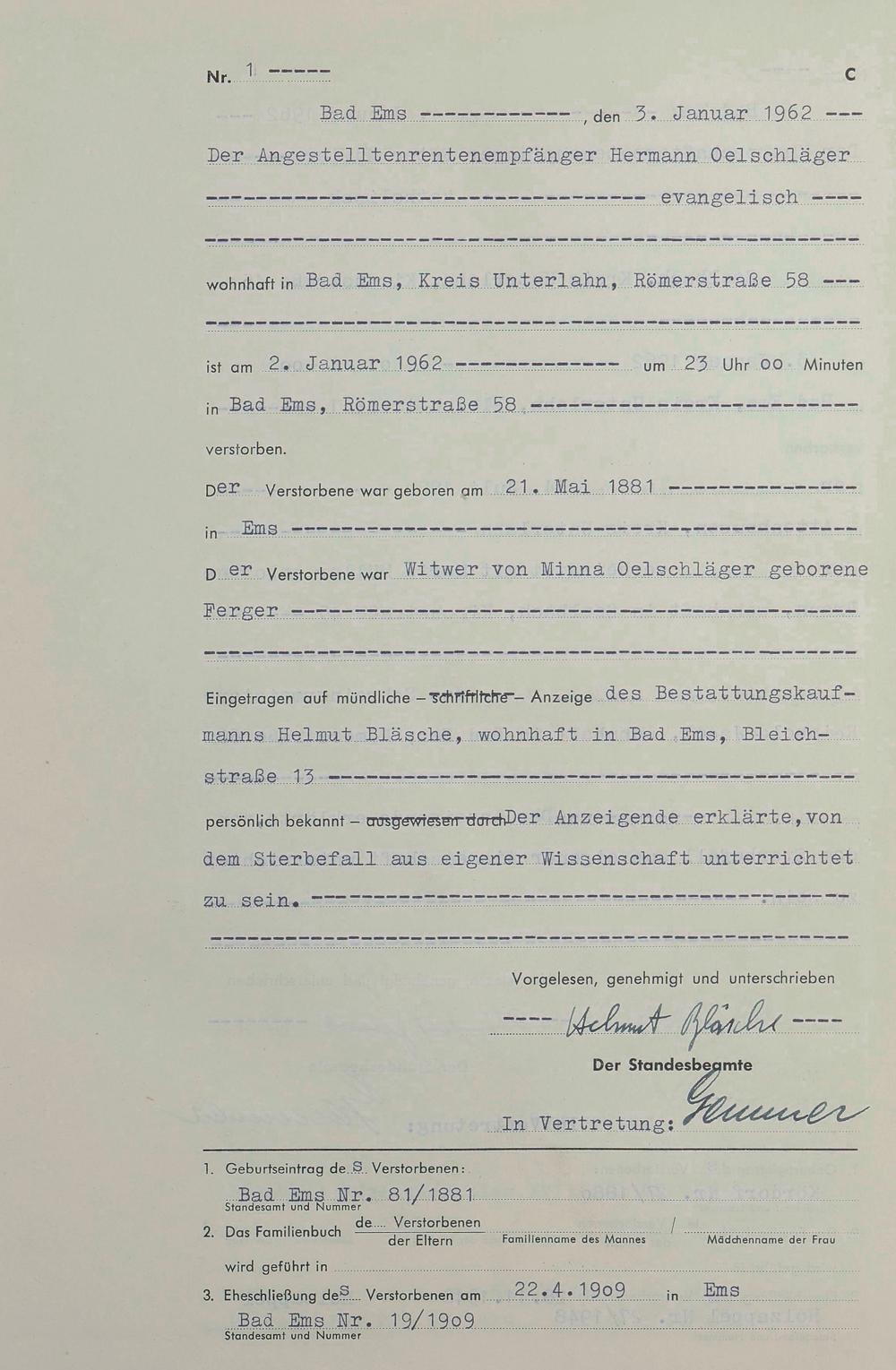 Sterberegister 1962
