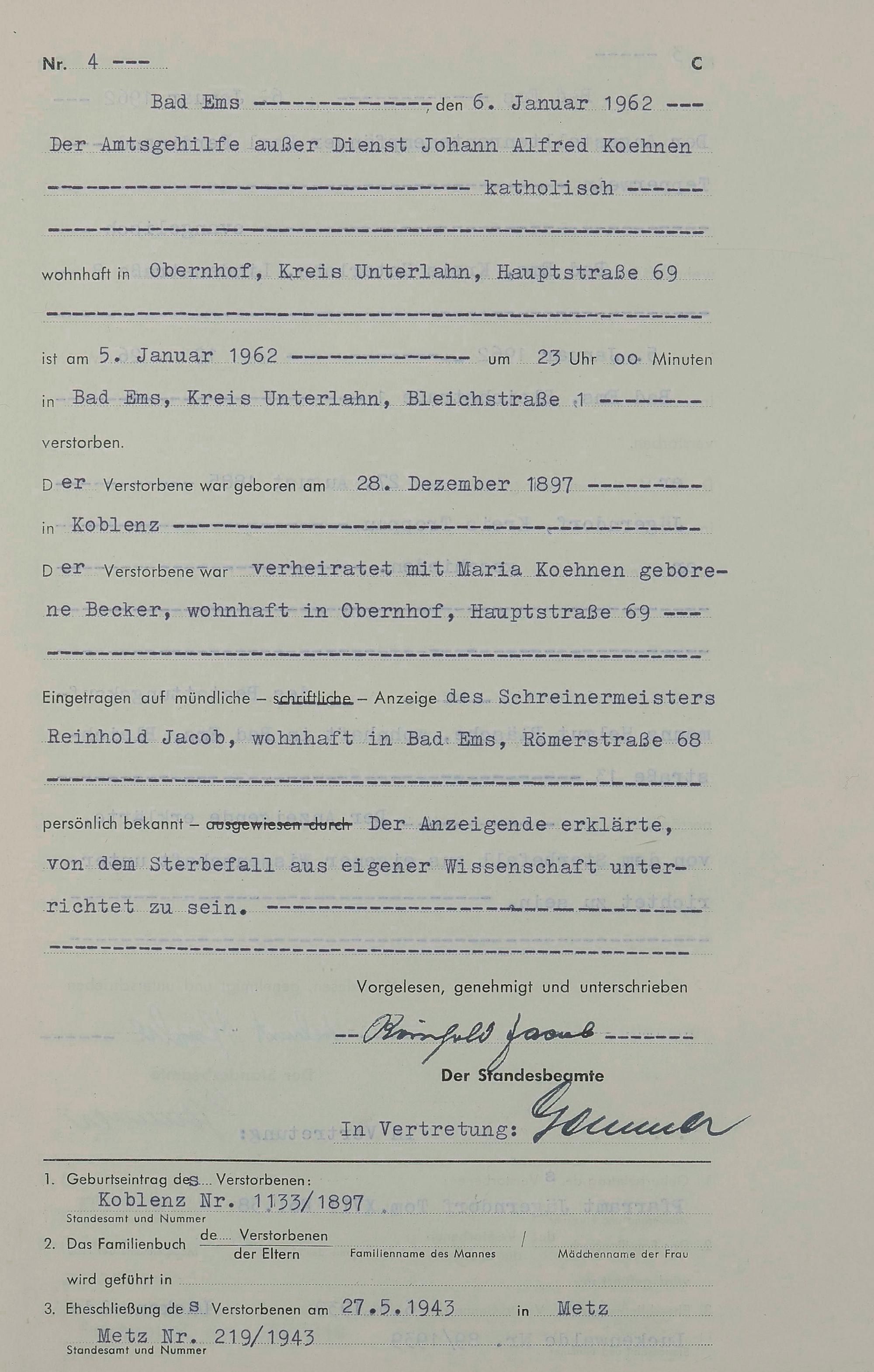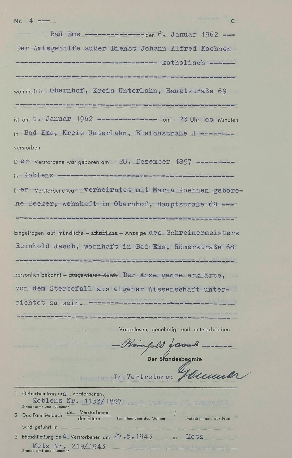 1538: Sterberegister 1962