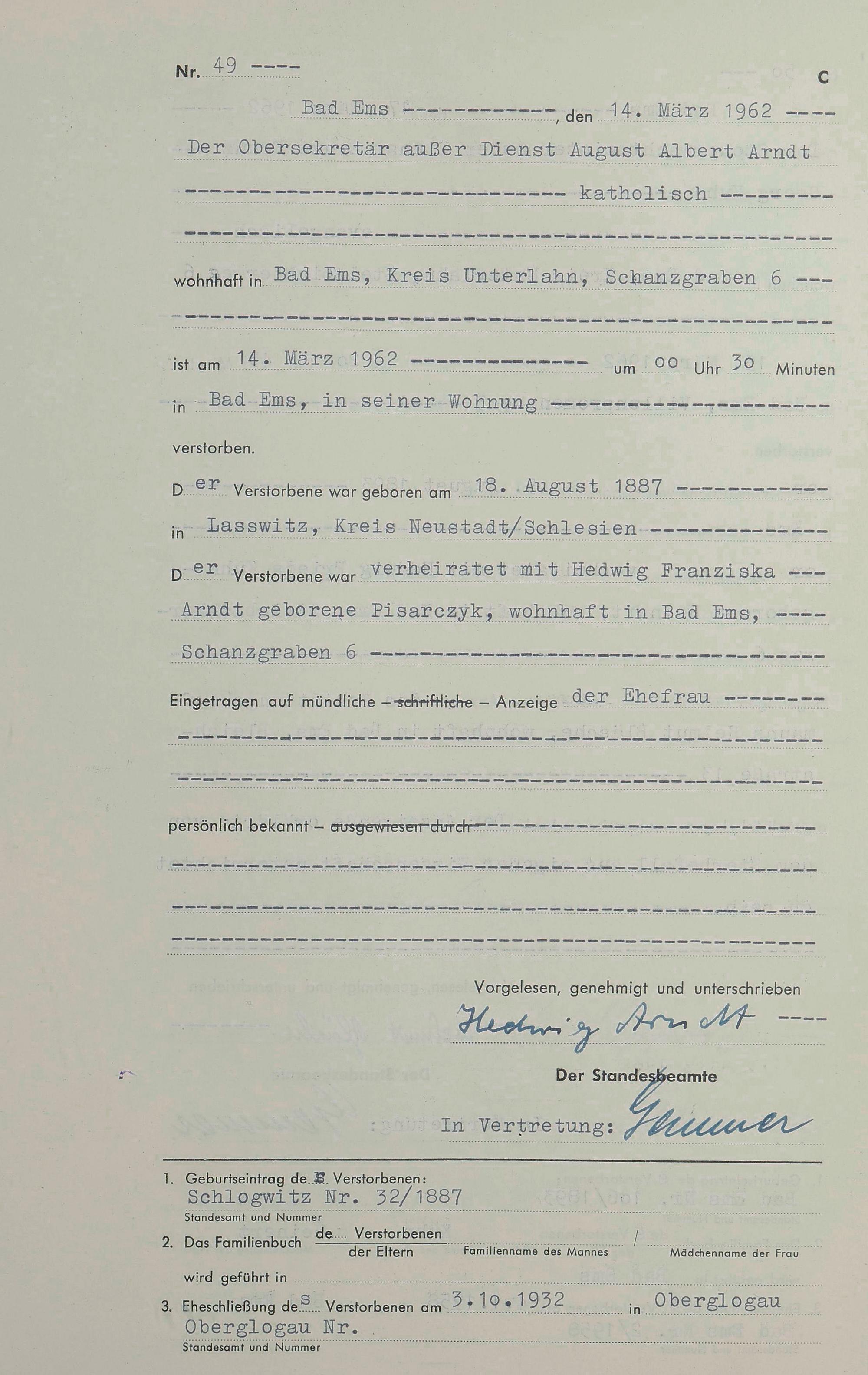 Sterberegister 1962