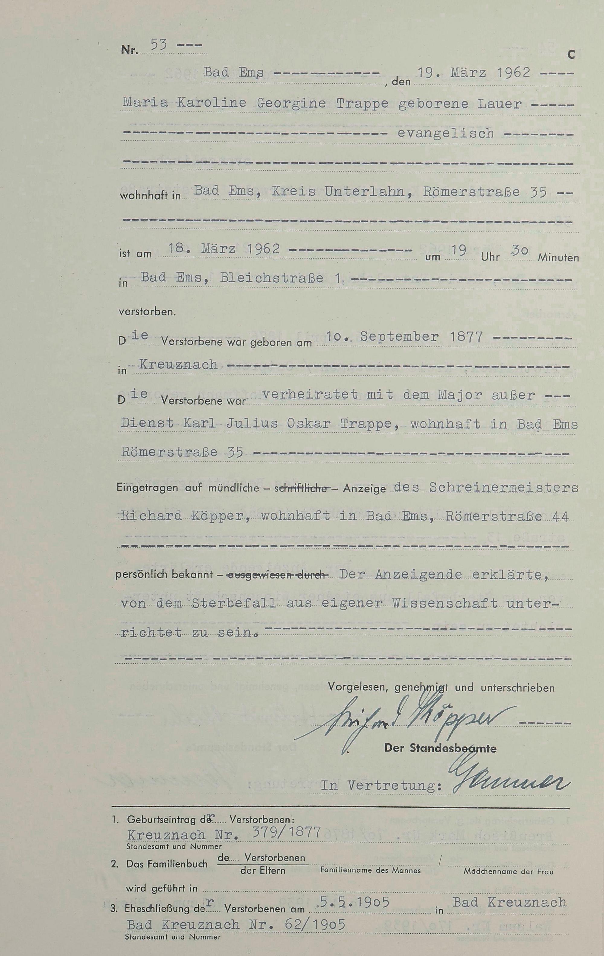 Sterberegister 1962