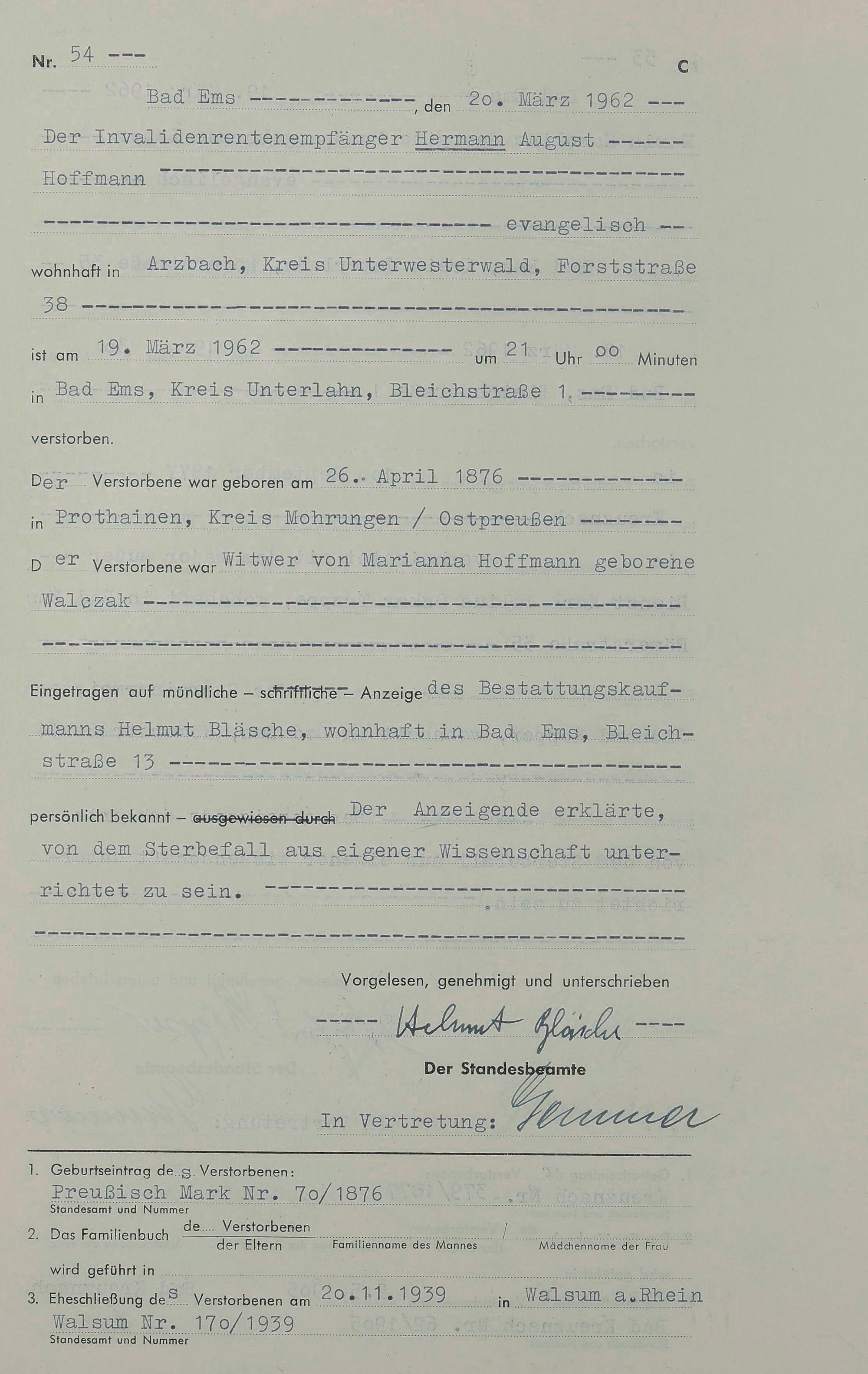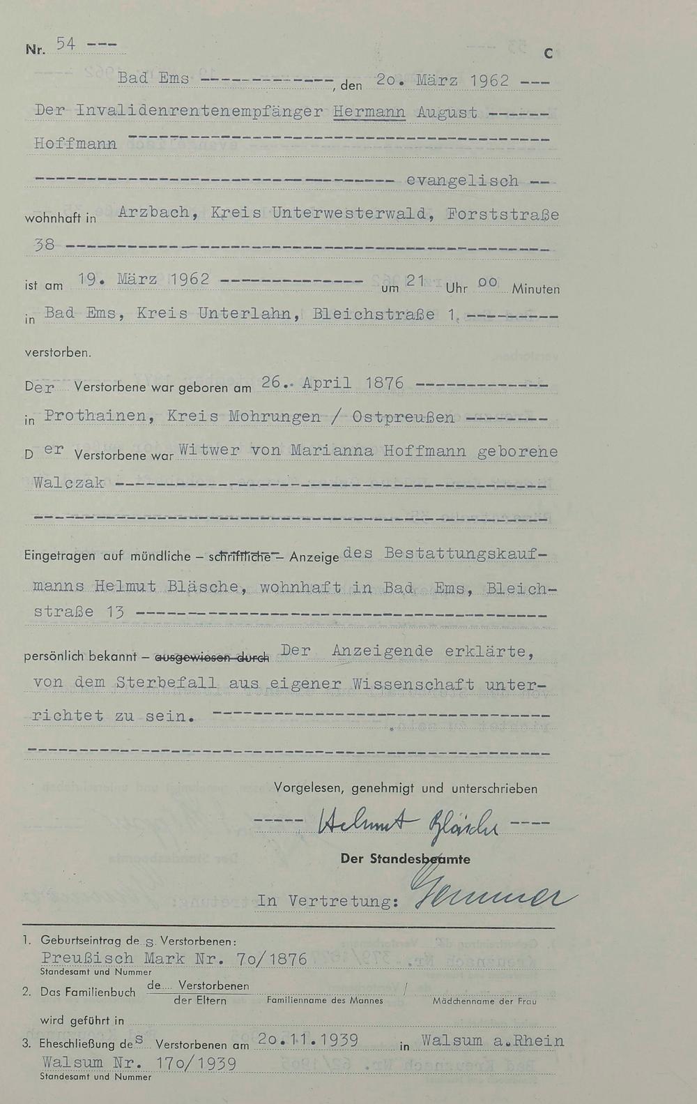 1538: Sterberegister 1962