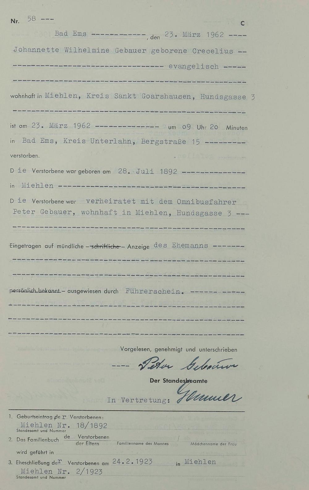 1538: Sterberegister 1962
