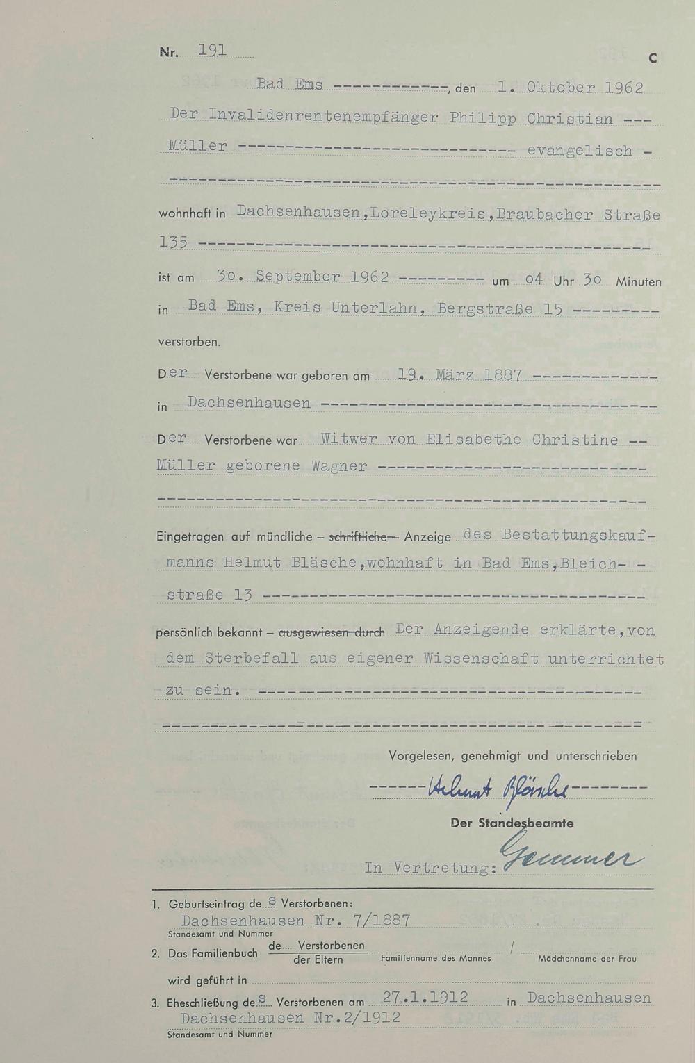 Sterberegister 1962
