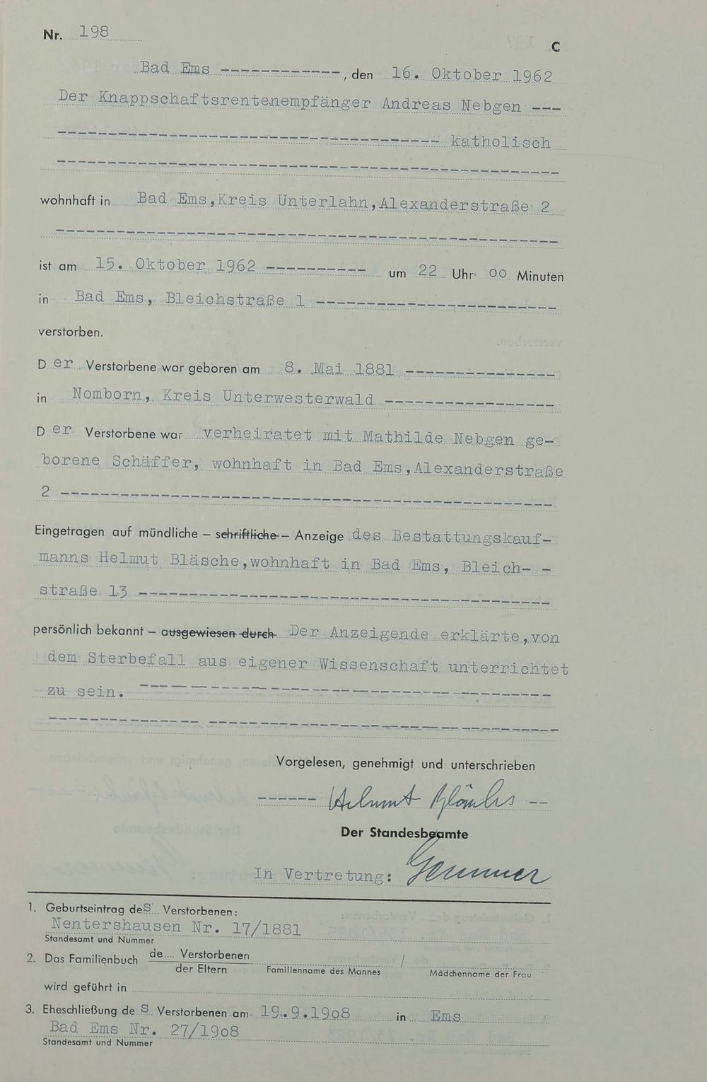 1538: Sterberegister 1962
