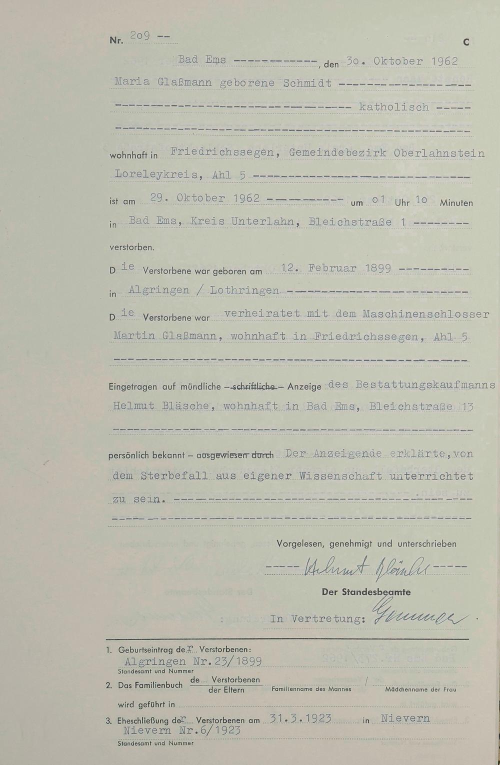 1538: Sterberegister 1962