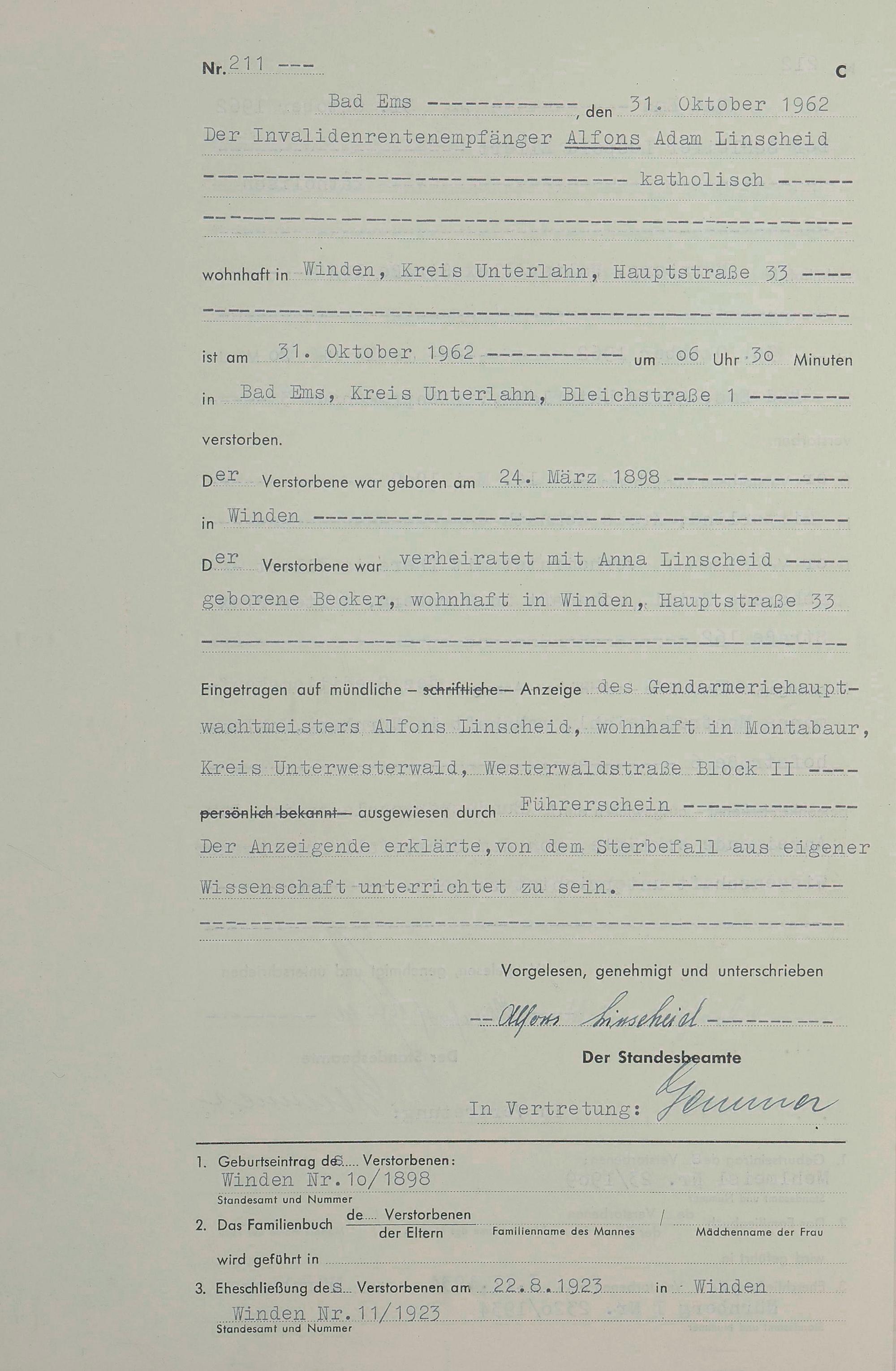 1538: Sterberegister 1962