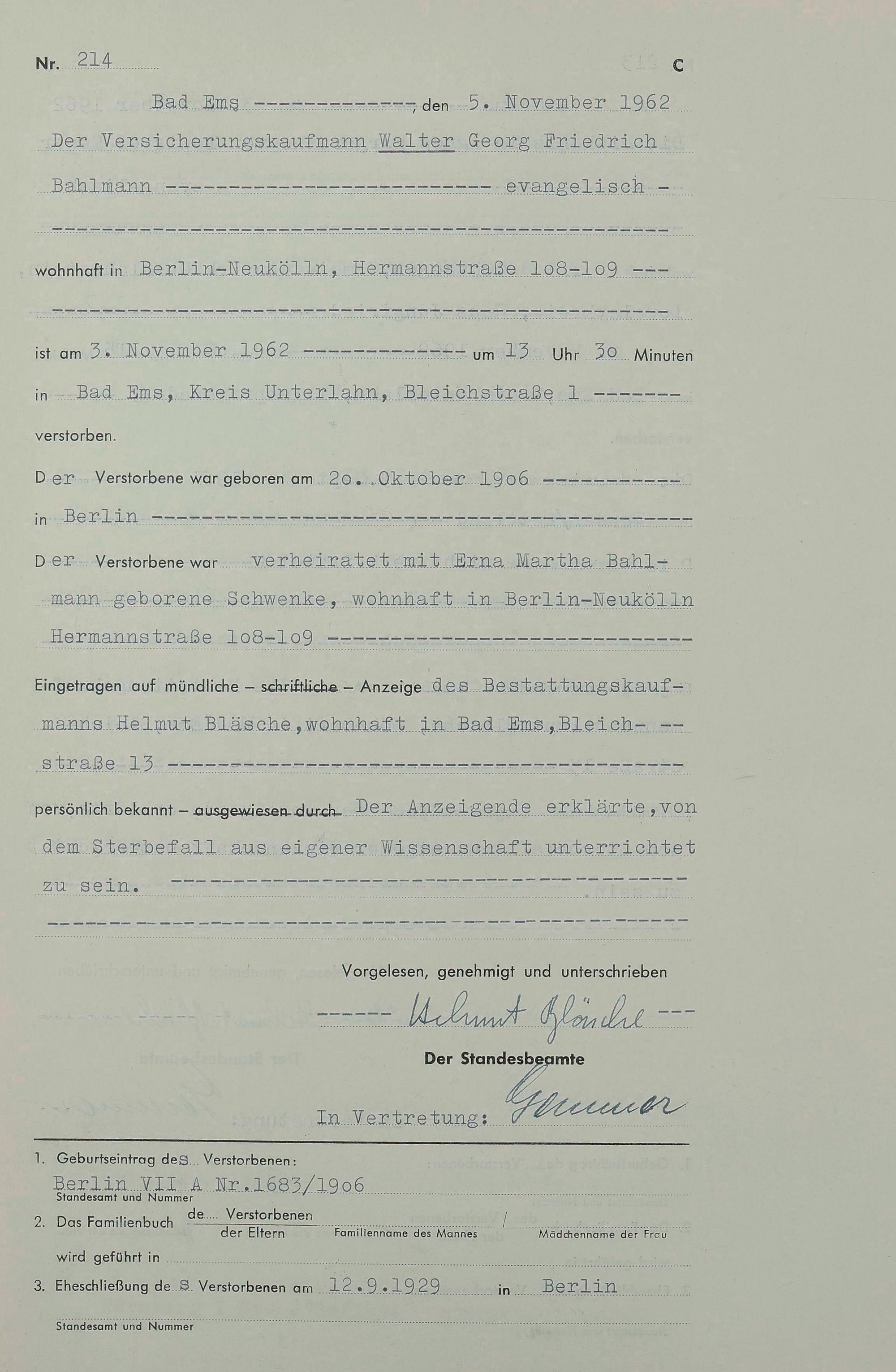 1538: Sterberegister 1962